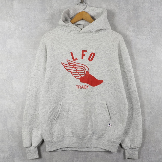 90's RUSSELL ATHLETIC USA製 ”LFO TRACK" ウイングフット プリントスウェットフーディー L [163187]