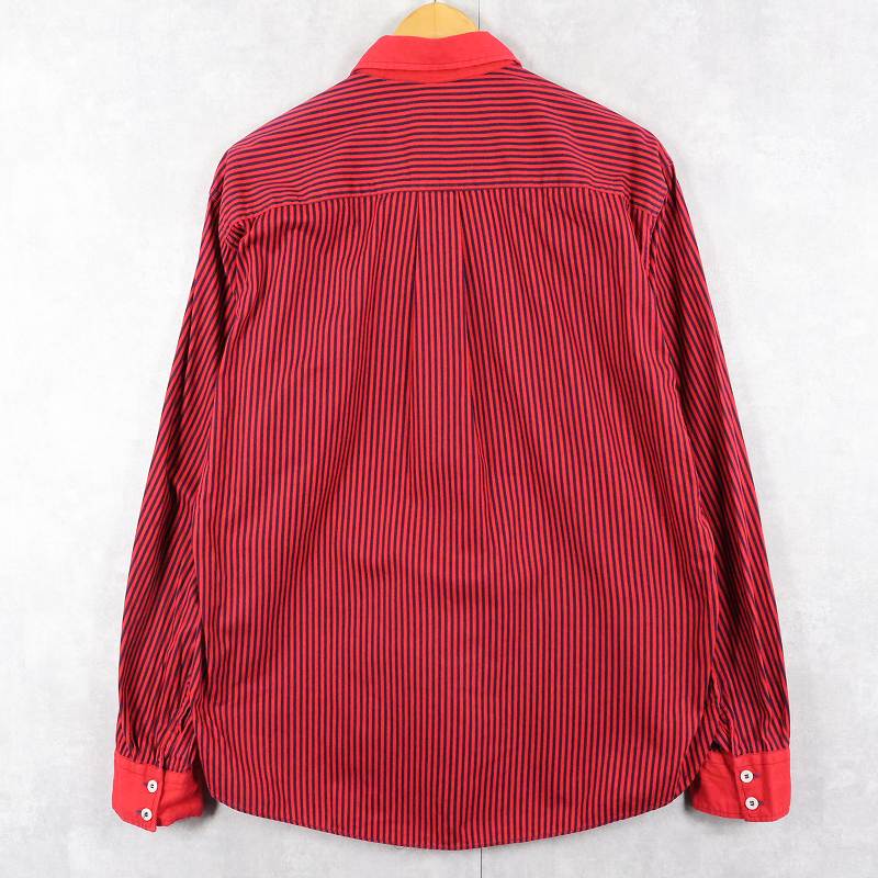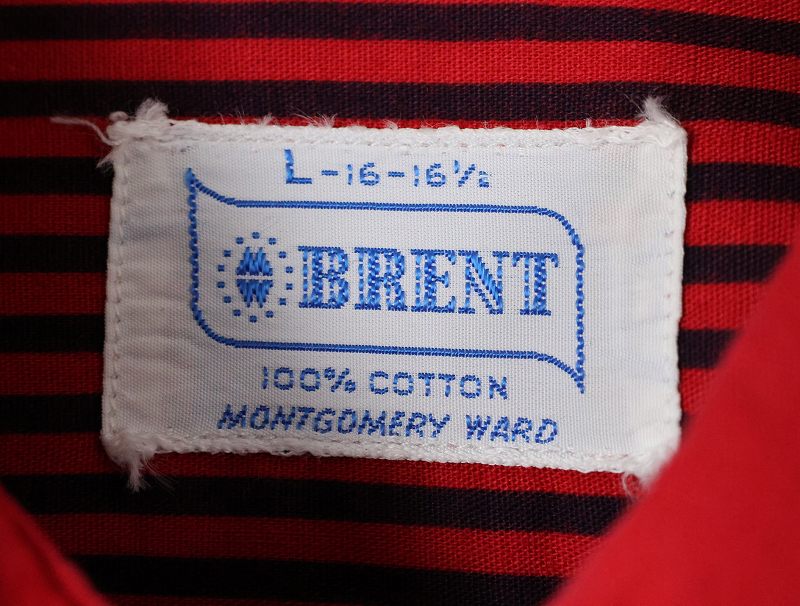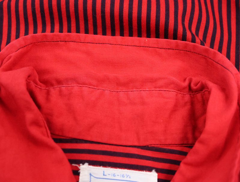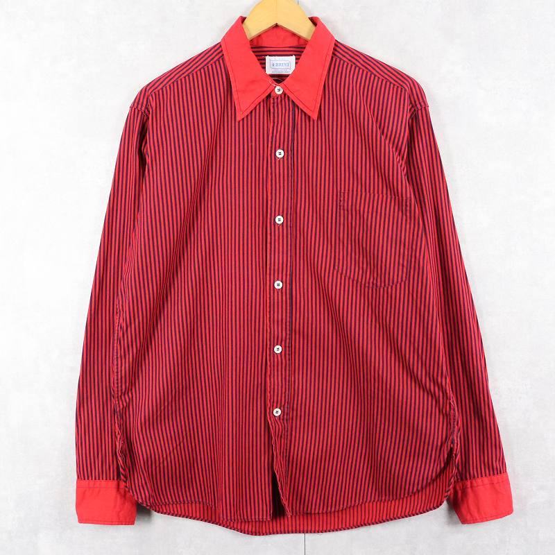 60's BRENT ストライプ柄 マチ付き コットンシャツ L [163230]