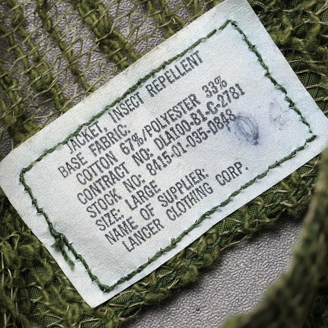 80's U.S.ARMY モスキートパーカー LARGE [163249]