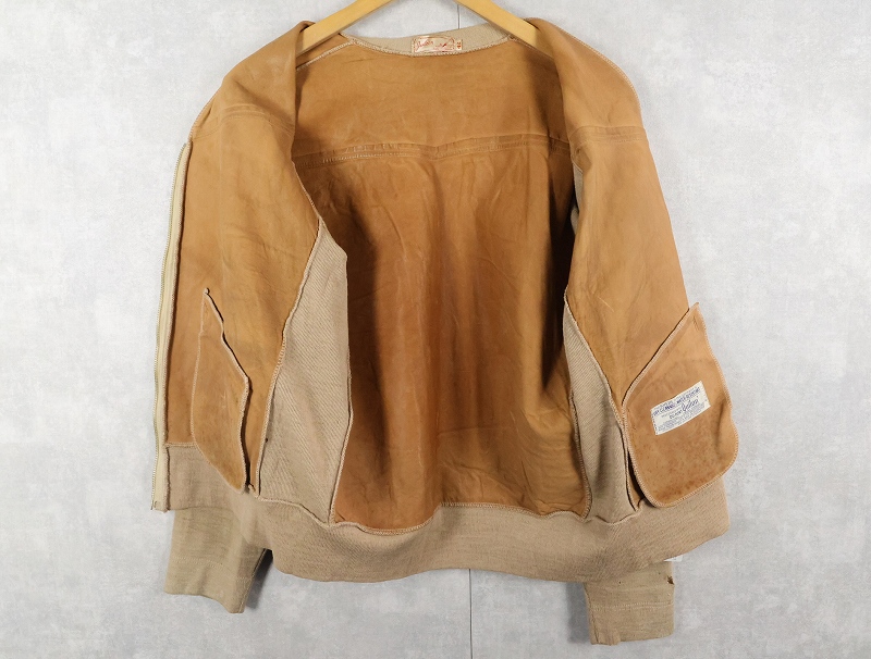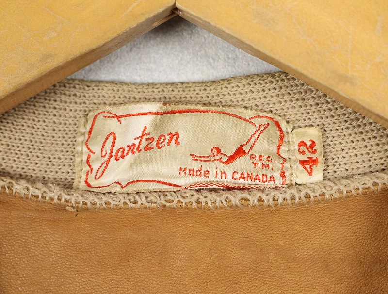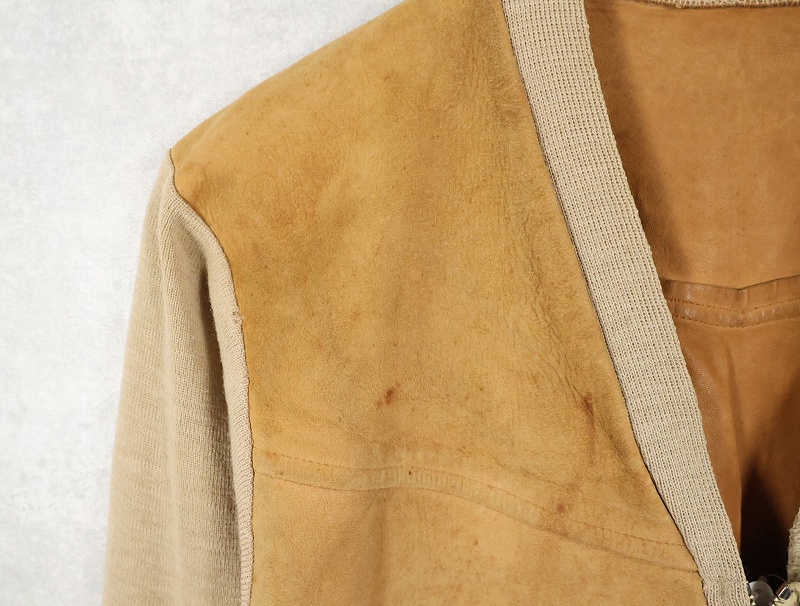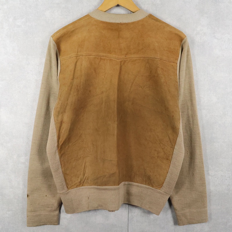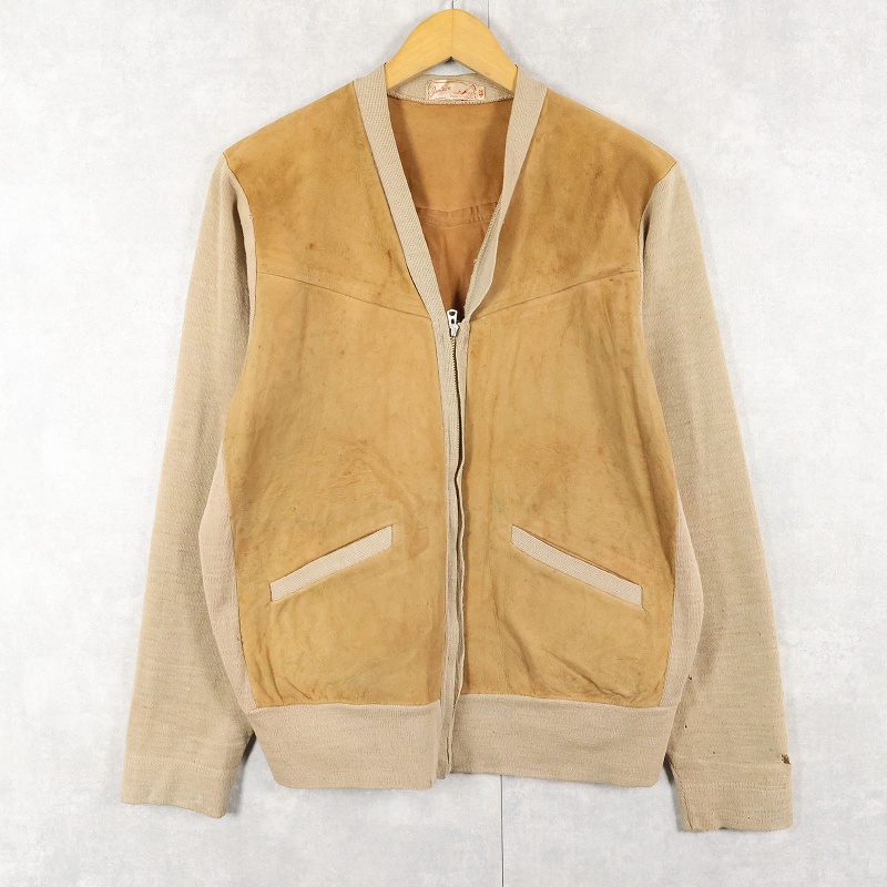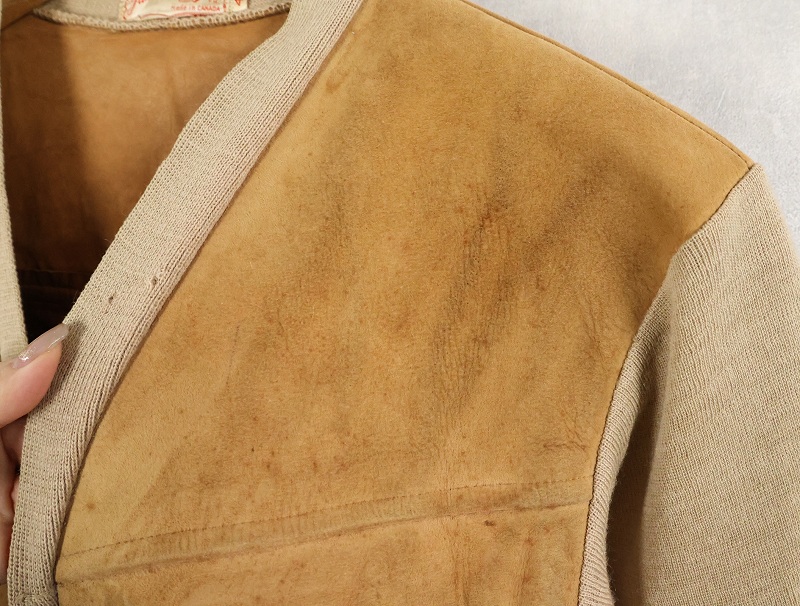 40〜50's Jantzen CANADA製 スエード切り替え ニットジップカーディガン SIZE42 [163266]
