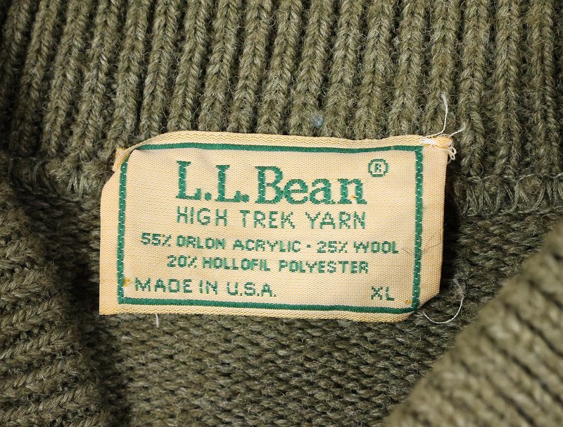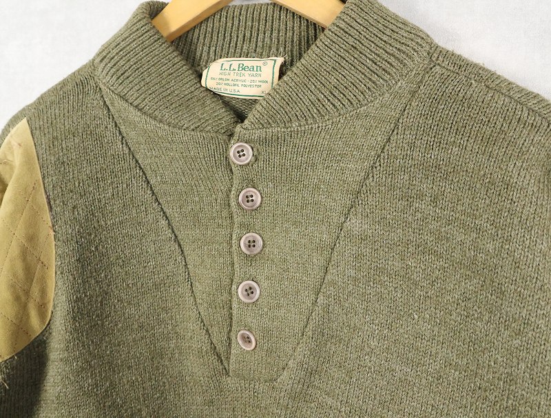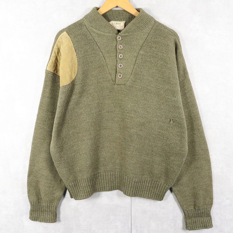 80〜90's L.L.Bean USA製 "HIGH TREK YARN" ショルダーパッチ付き ヘンリーネック アクリルニットセーター XL [163267]