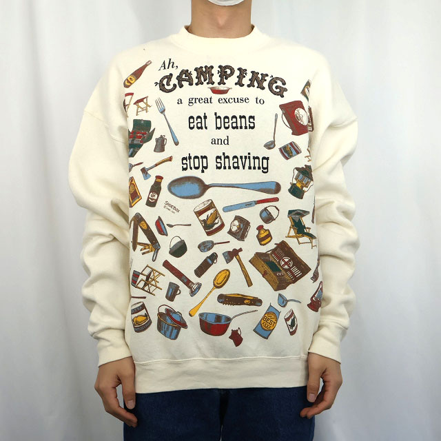 90's SHOEBOX USA製 "Ah, CAMPING a great excuse to..." イラストプリントスウェット XL [163282]