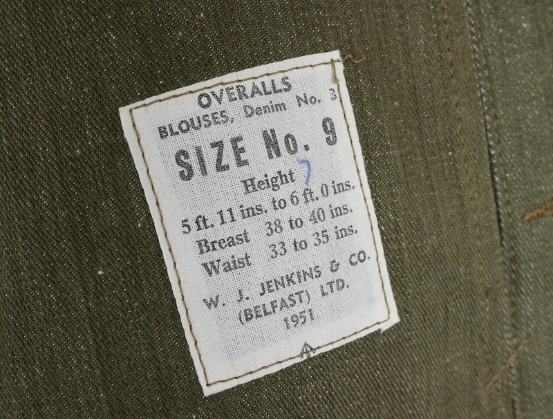 50's BRITISH ARMY グリーンデニム BATTLEDRESS JACKET SIZE9 [163289]