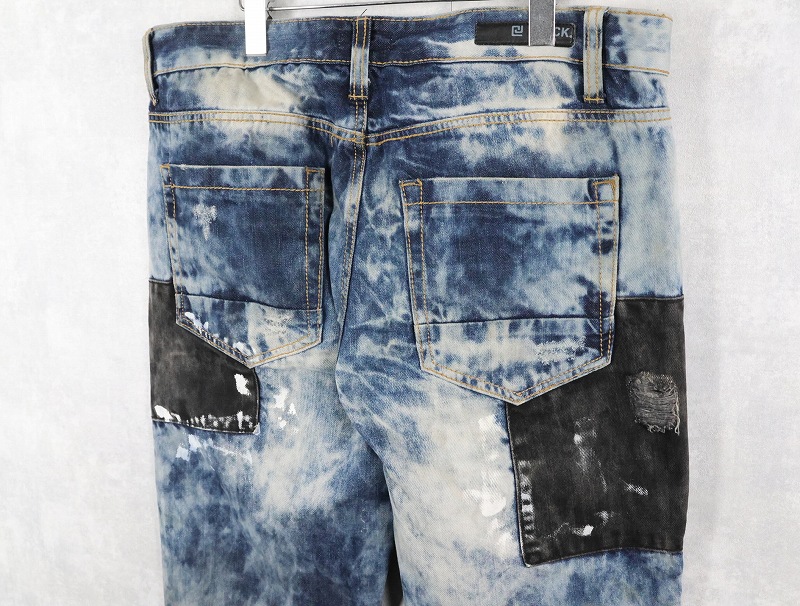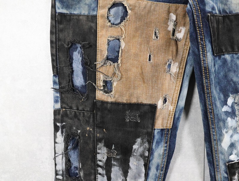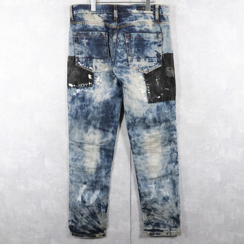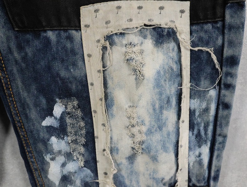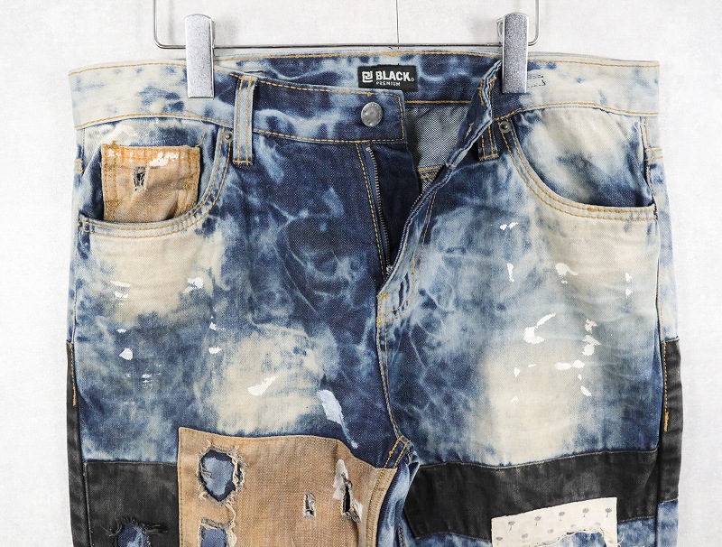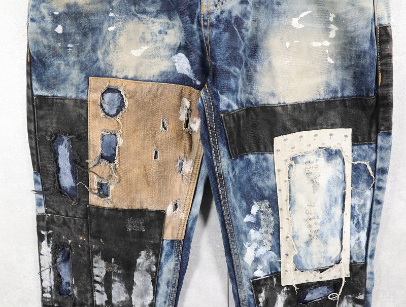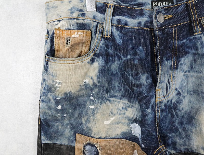 CJ BLACK PREMIUM "SLIM STRAIGHT" ブリーチ&パッチワークデザイン デニムパンツ W39 [163308]