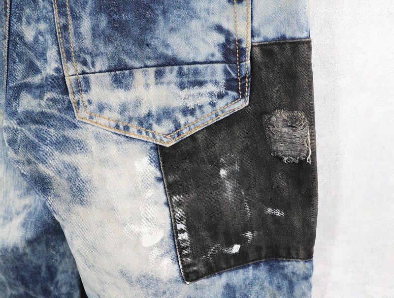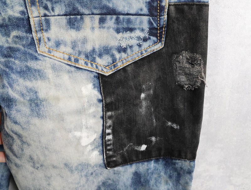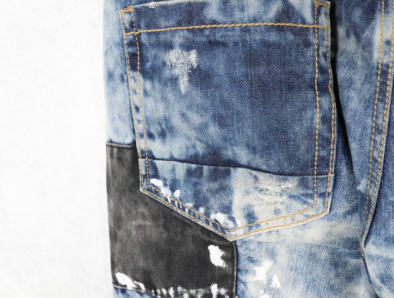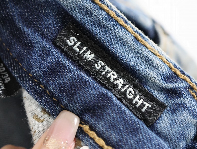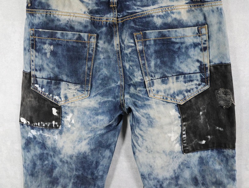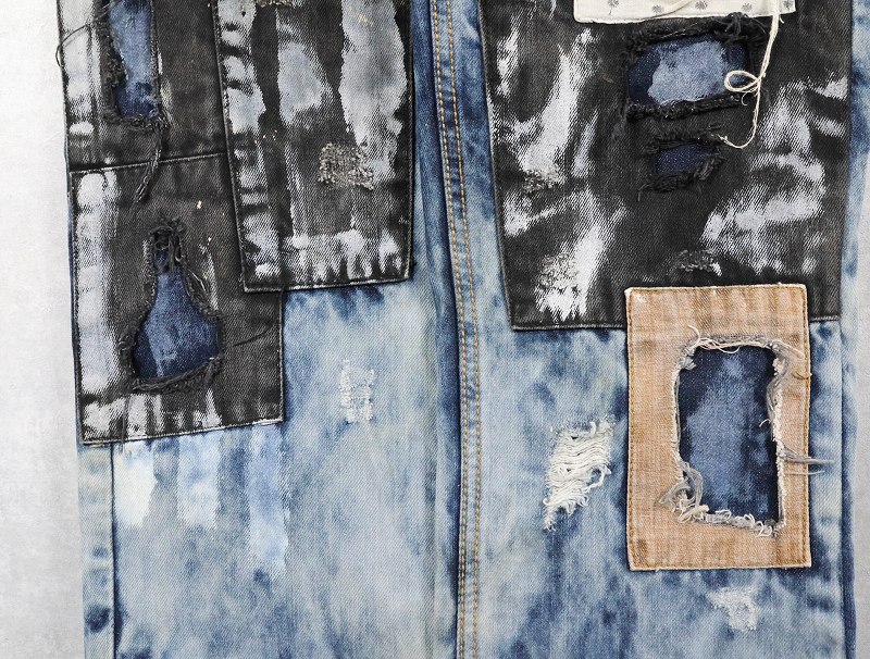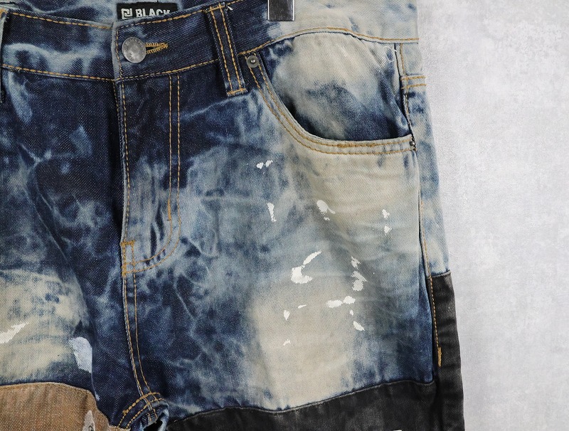 CJ BLACK PREMIUM "SLIM STRAIGHT" ブリーチ&パッチワークデザイン デニムパンツ W39 [163308]
