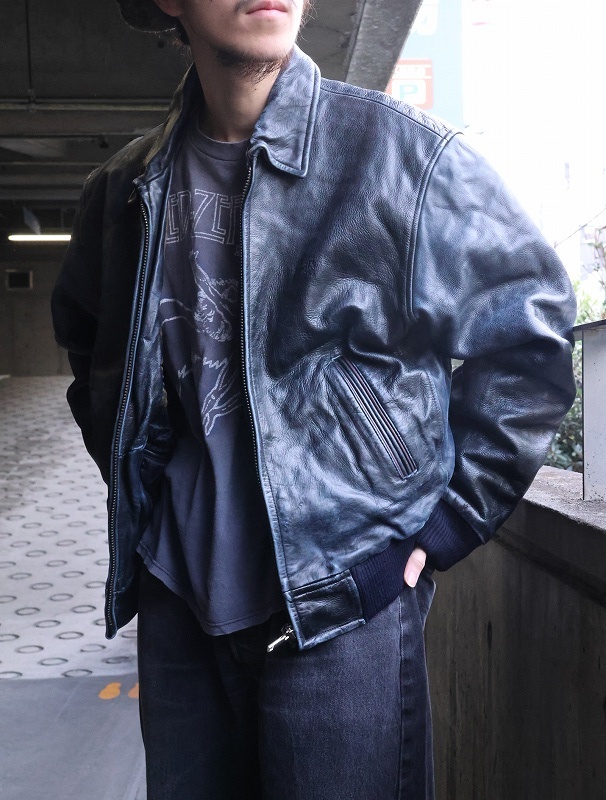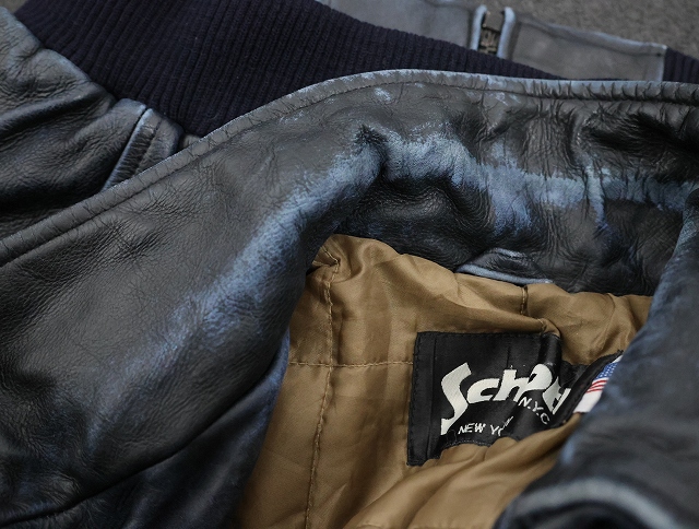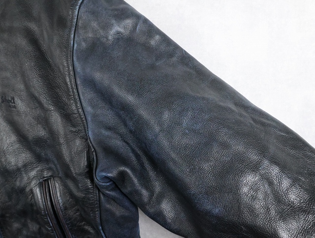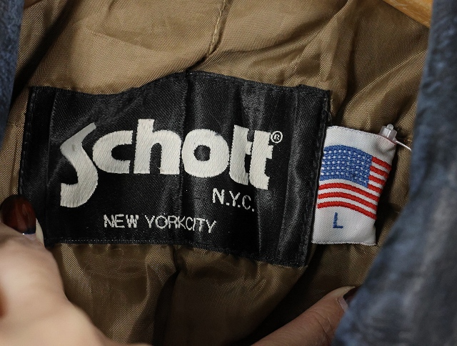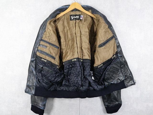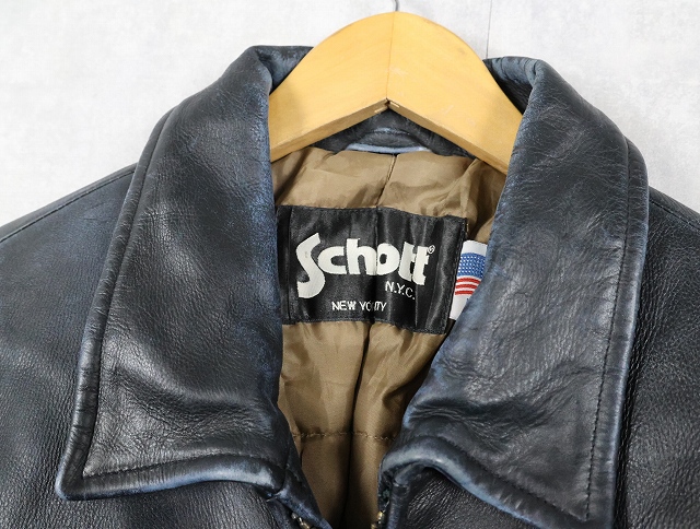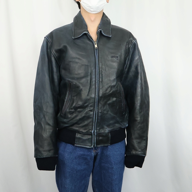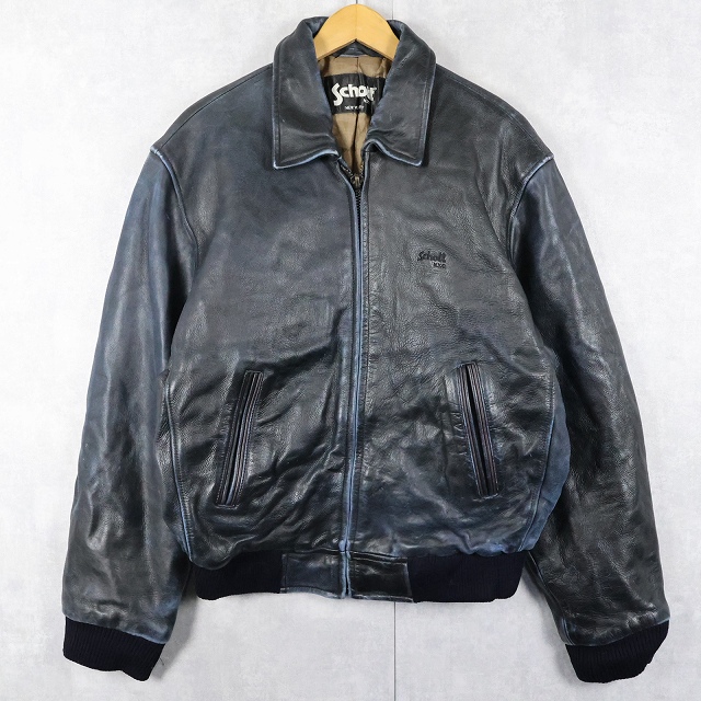 70〜80's Schott USA製 ロゴ刺繍 レザージャケット BLACK L [163327]