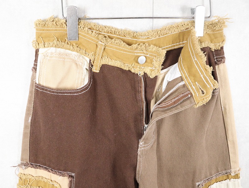 UNKNOWN カットオフ&パッチワークデザイン カラーデニムパンツ W32 [163346]