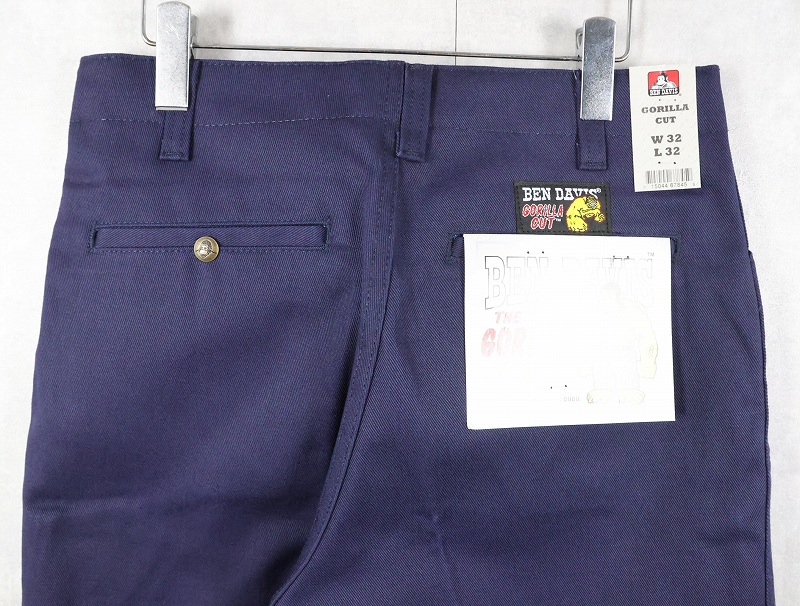 BEN DAVIS "THE GORILLA CUT" ゴリラカットパンツ NAVY フラッシャー付き未使用品 W32 L32 [163354]