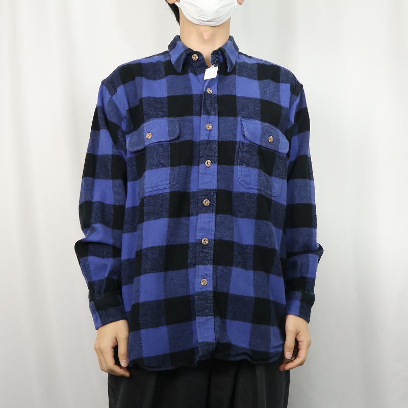 90〜2000's FIELD&STREAM バッファローチェック柄 ヘビーネルシャツ L [163399]