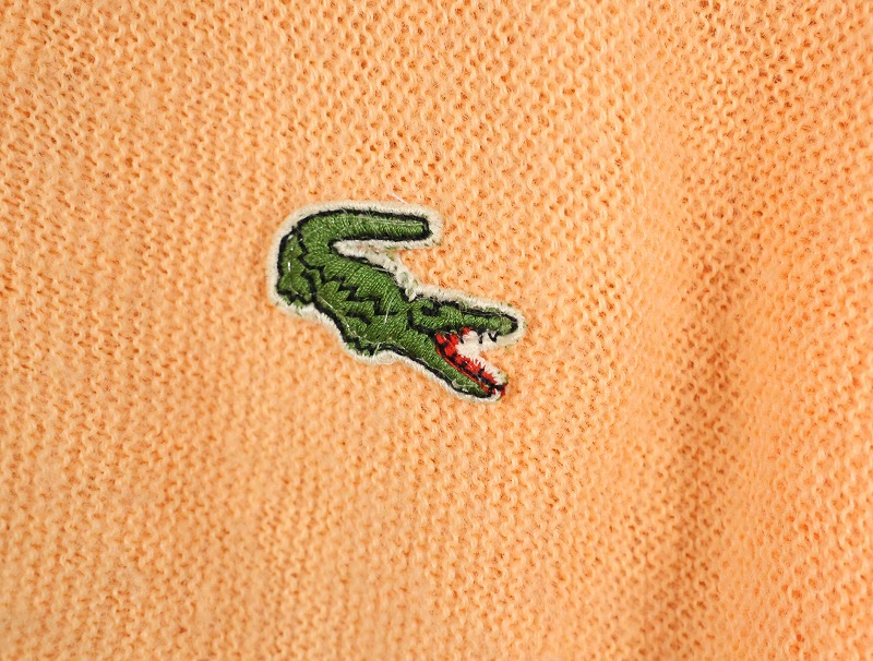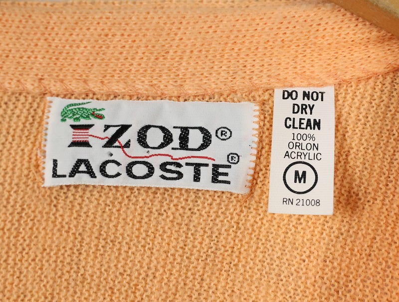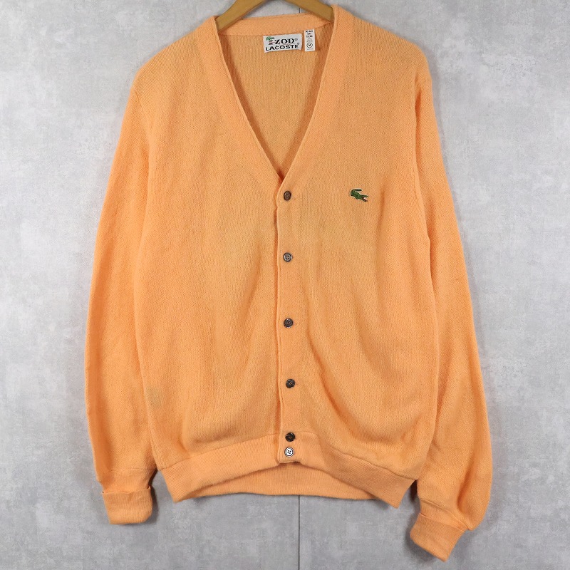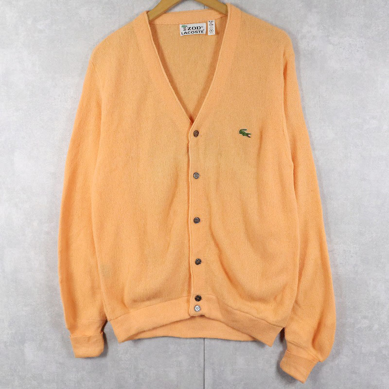 70's IZOD LACOSTE USA製 ロゴワッペン アクリルニットカーディガン M [163403]