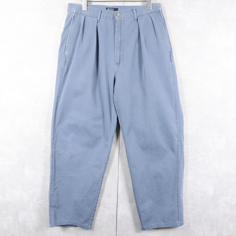 90's POLO Ralph Lauren USA製 "POLO CHINO" 2タック コットンチノトラウザーズ W32 [163407]