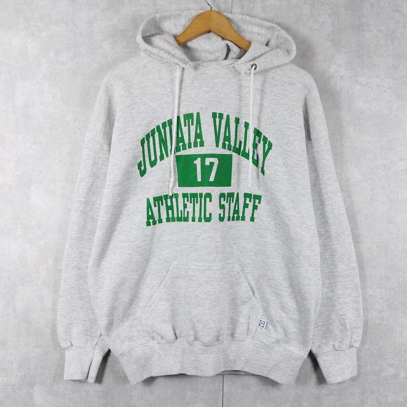 90's DISCUS USA製 "JUNIATA VALLEY ATHLETIC STAFF" プリントスウェットフーディー [163422]