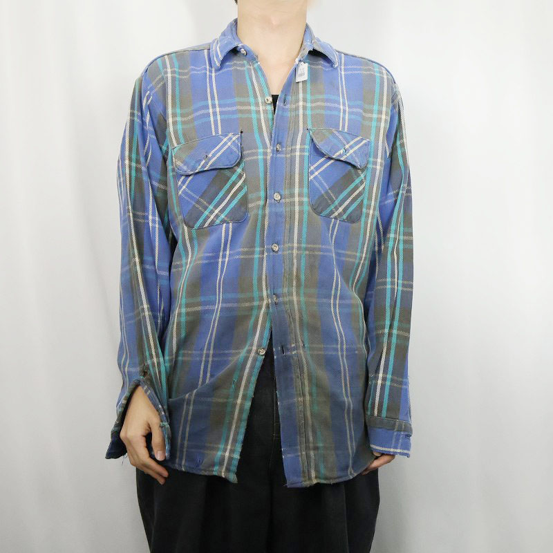 90's FIVE BROTHER チェック柄 ヘビーネルシャツ L [163441]