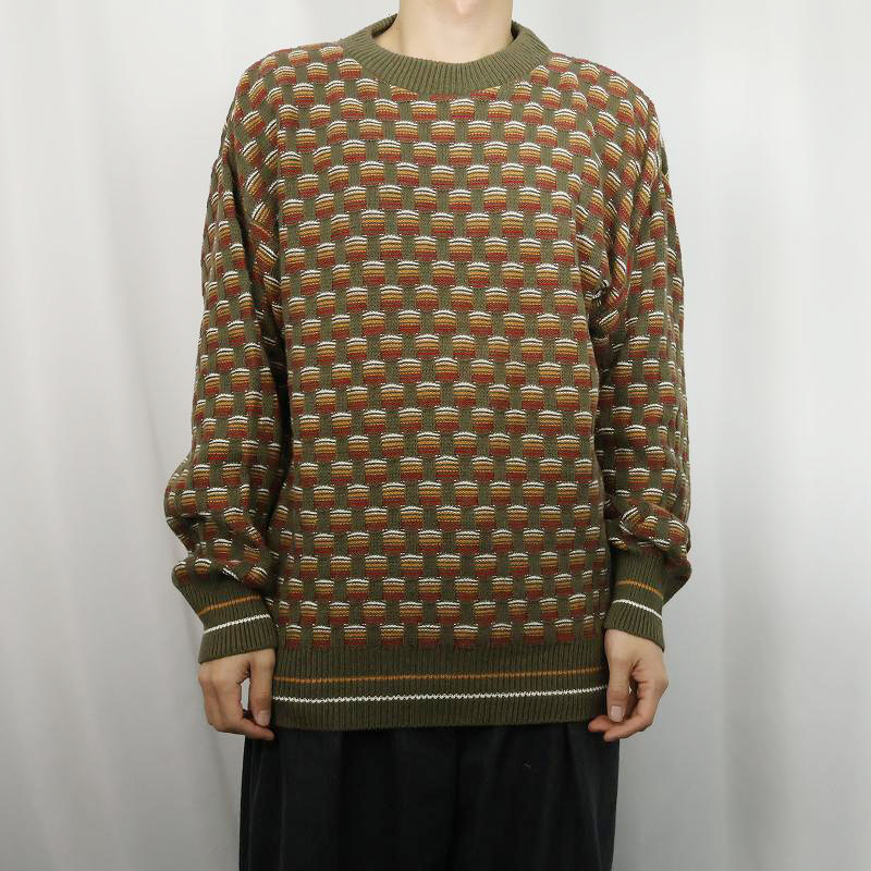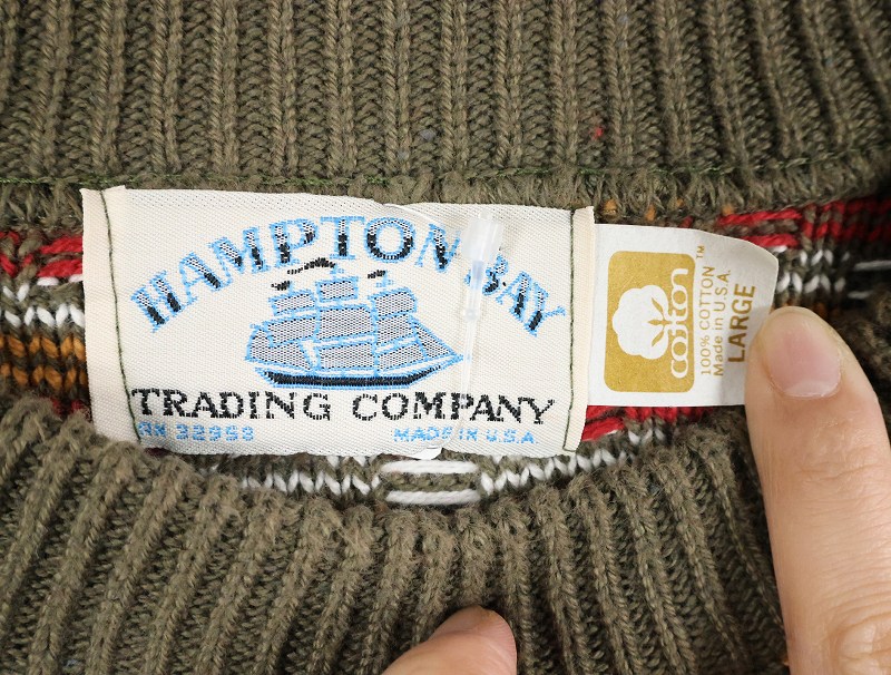 90's HAMPTON BAY USA製 総柄 コットンニットセーター L [163449]