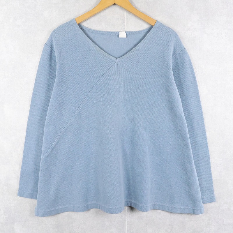 80〜90's USA製 Vネック コットンプルオーバーカットソー L [163451]