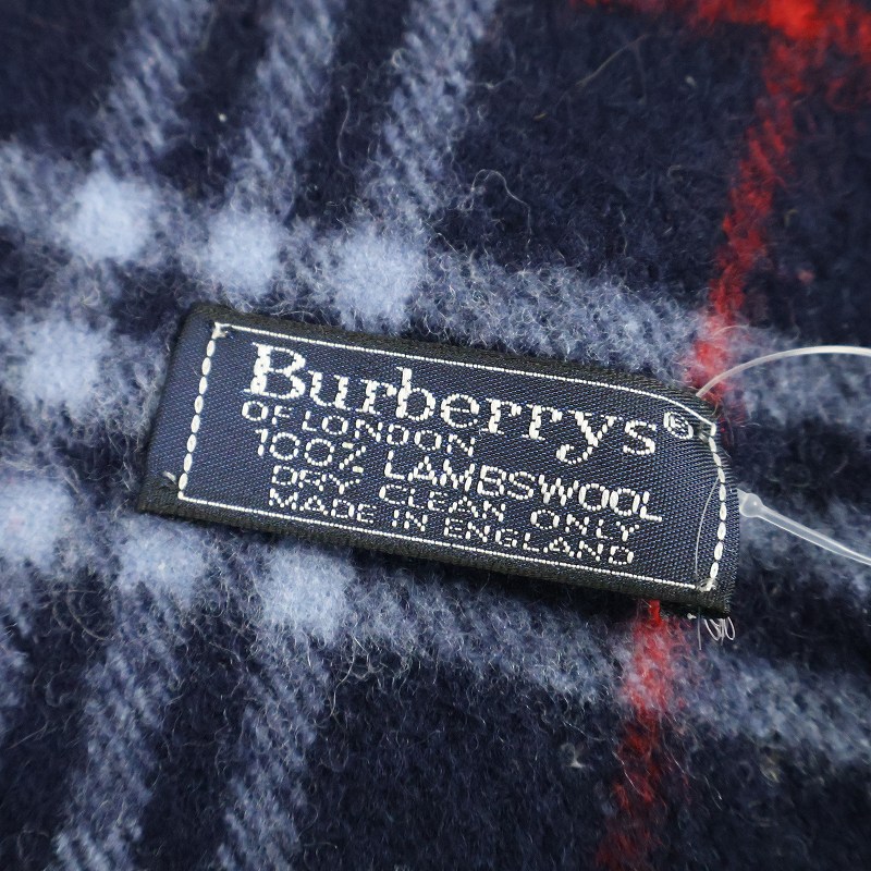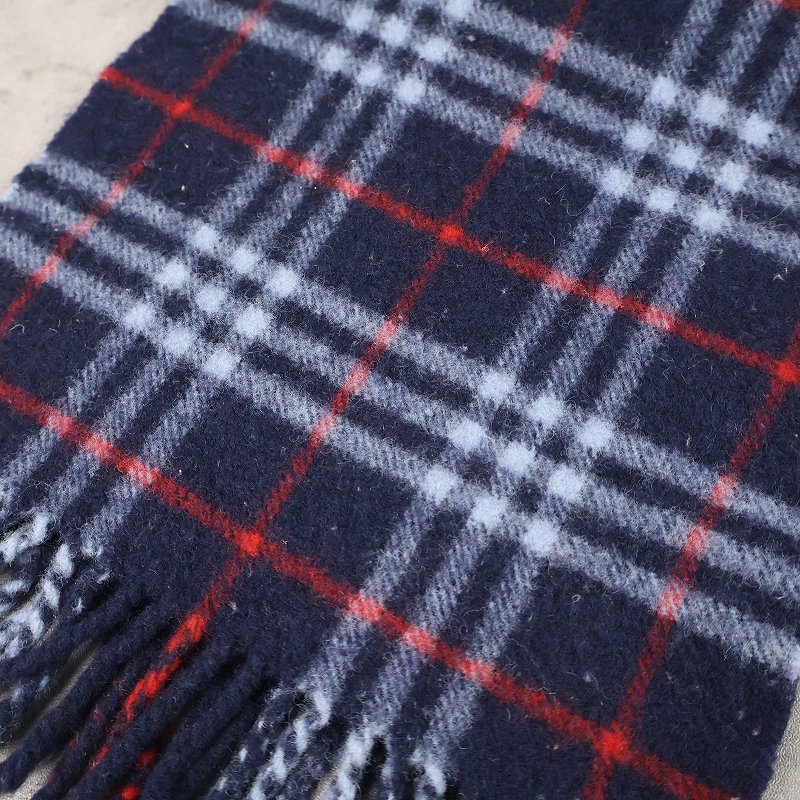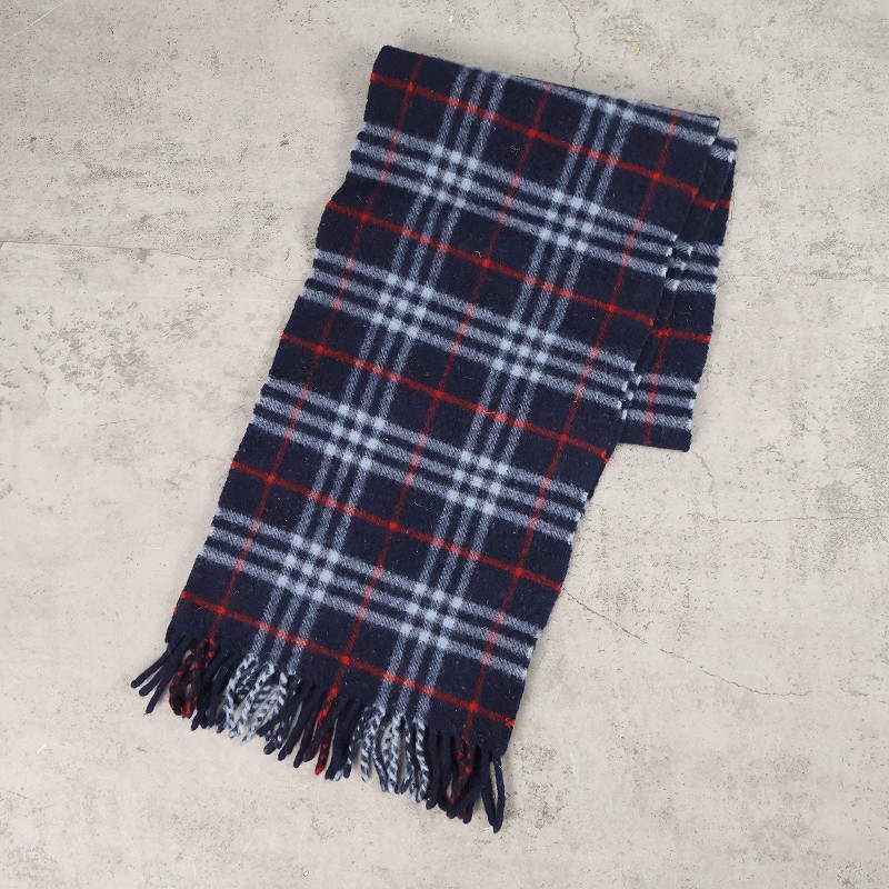 90's Burberrys ENGLAND製 チェック柄 カシミアマフラー NAVY [163456]