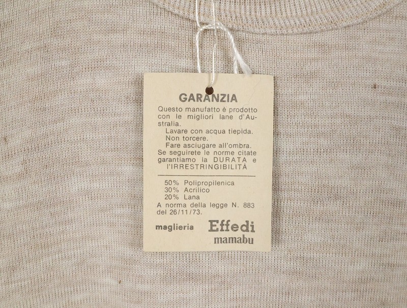 60〜70's Effedi mamabu ウール混 アンダーシャツ SIZE6 タグ付き未使用 [163458]