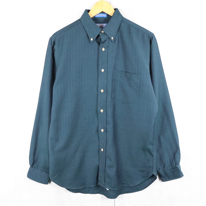 70's PENDLETON USA製 "Country Traditionals" ヘリンボーン織り ウールボタンダウンシャツ M [163462]