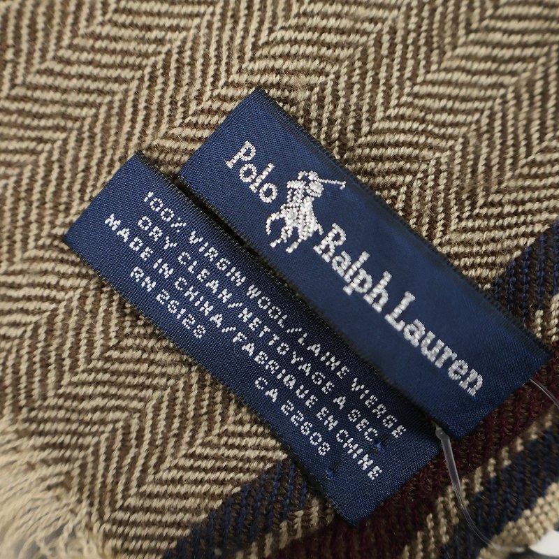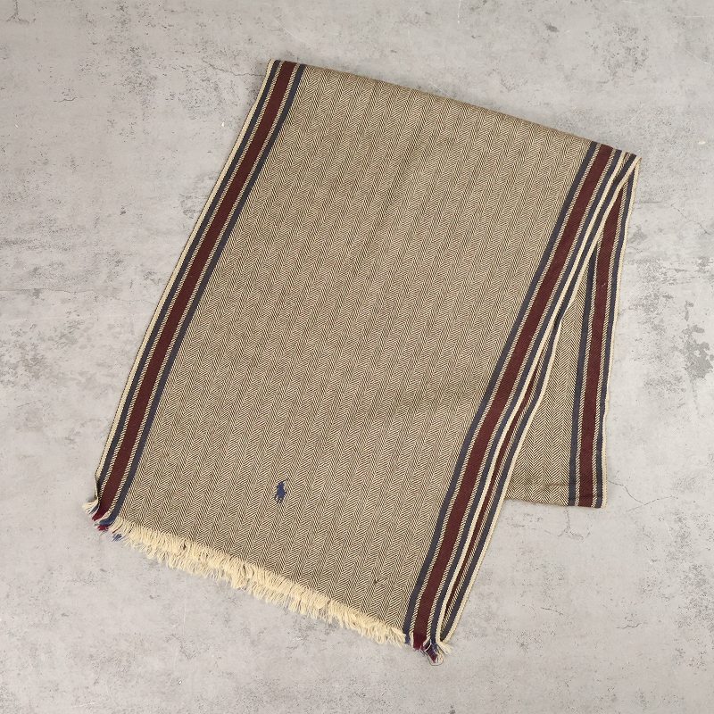 POLO Ralph Lauren ロゴ刺繍 ヘリンボーン ヴァージンウールマフラー [163483]