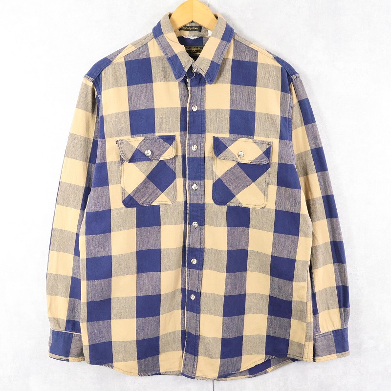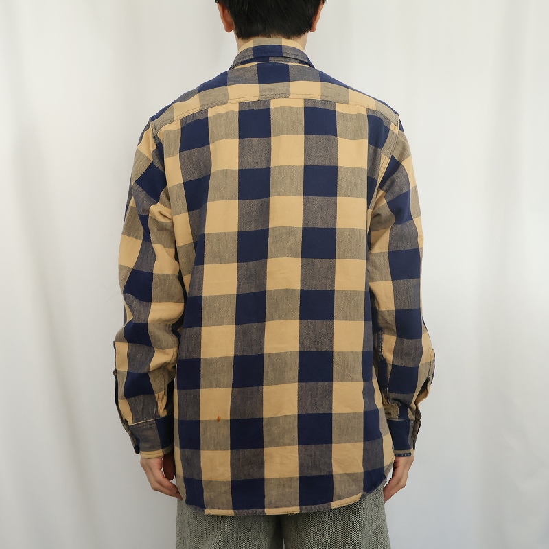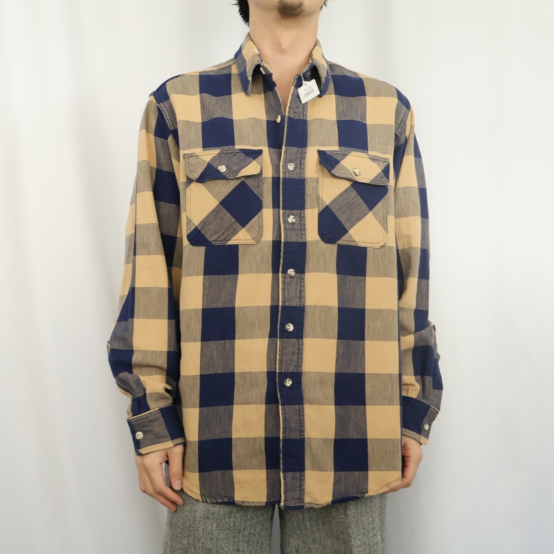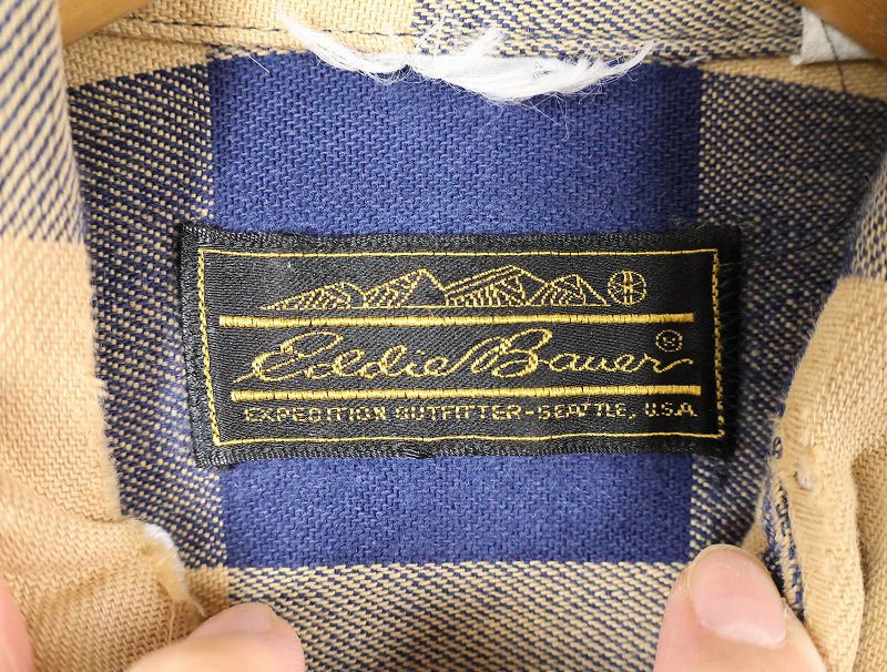 70〜80's Eddie Bauer USA製 ブロックチェック柄 ヘビーネルシャツ L [163499]