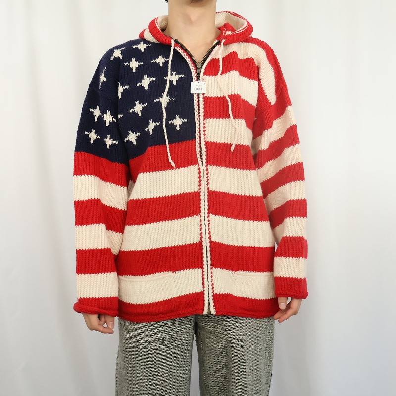 ECUADOR製 星条旗柄 ウールニットパーカー [163503]