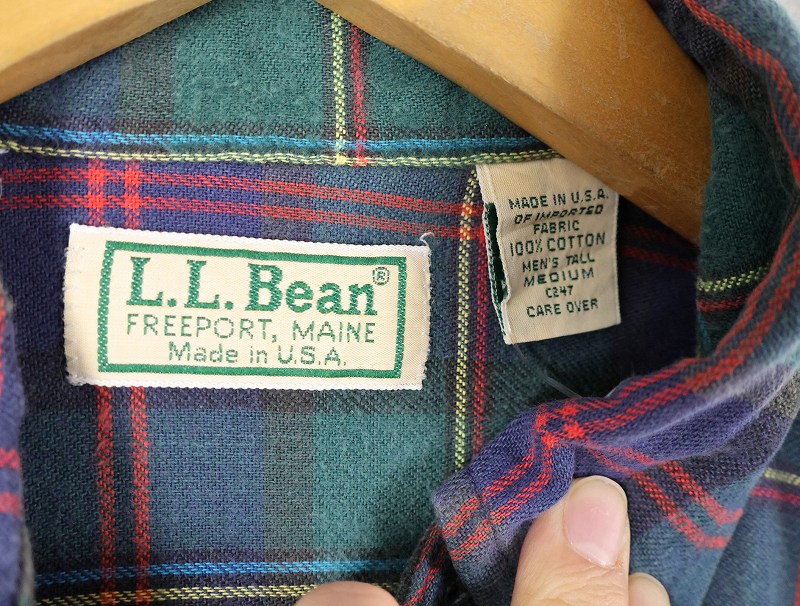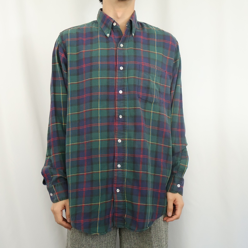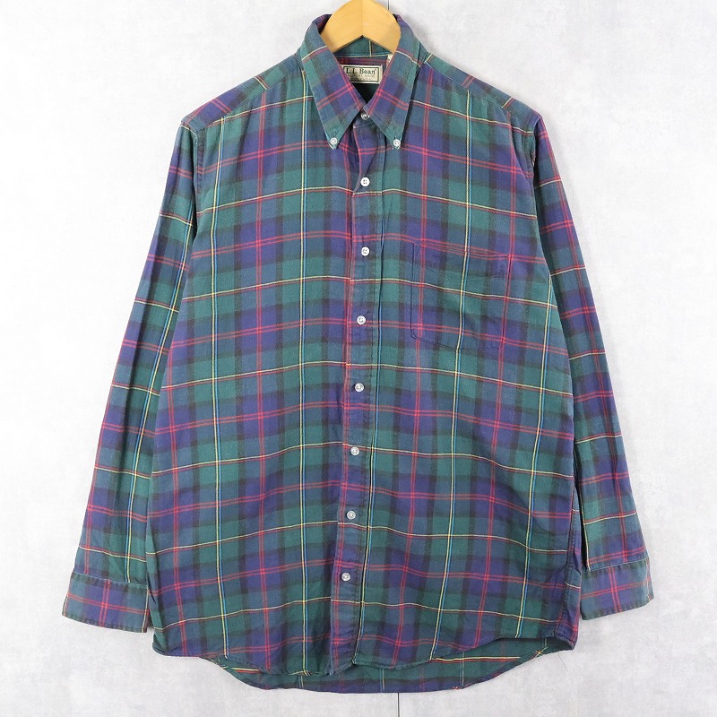 80〜90's L.L.Bean USA製 チェック柄 ボタンダウンネルシャツ M [163517]