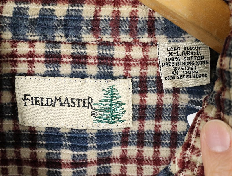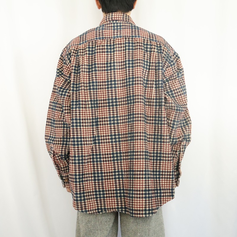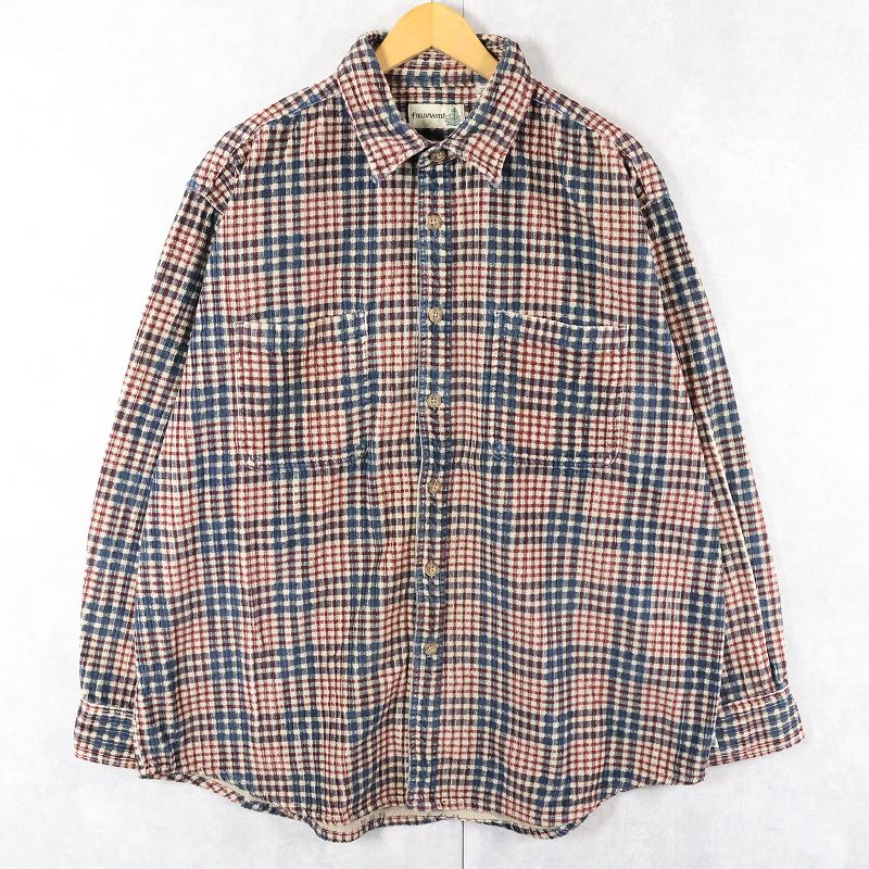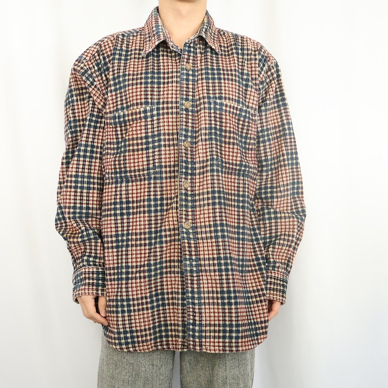 90's Fieldmaster チェック柄 プリントコーデュロイシャツ XL [163521]