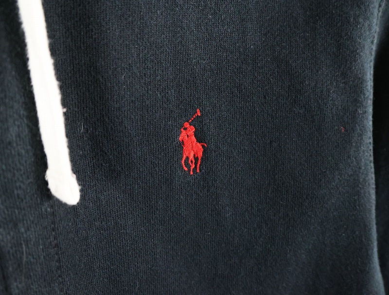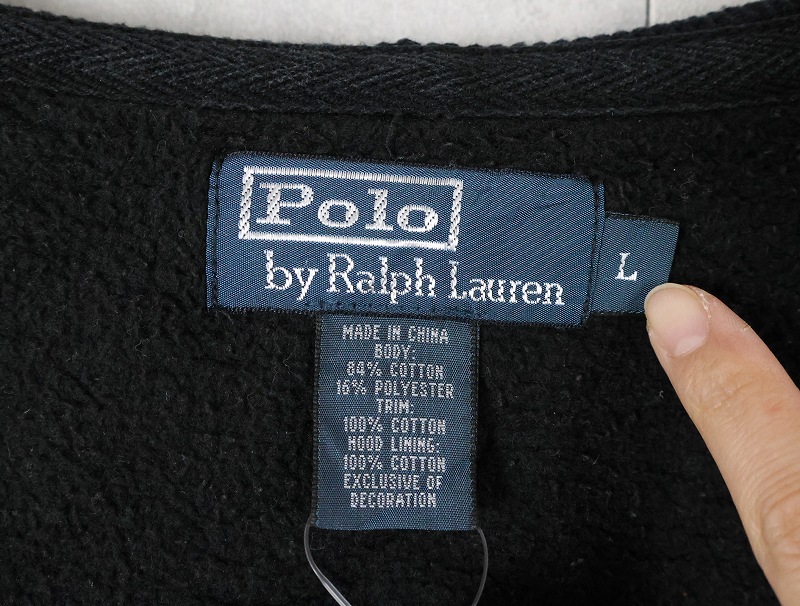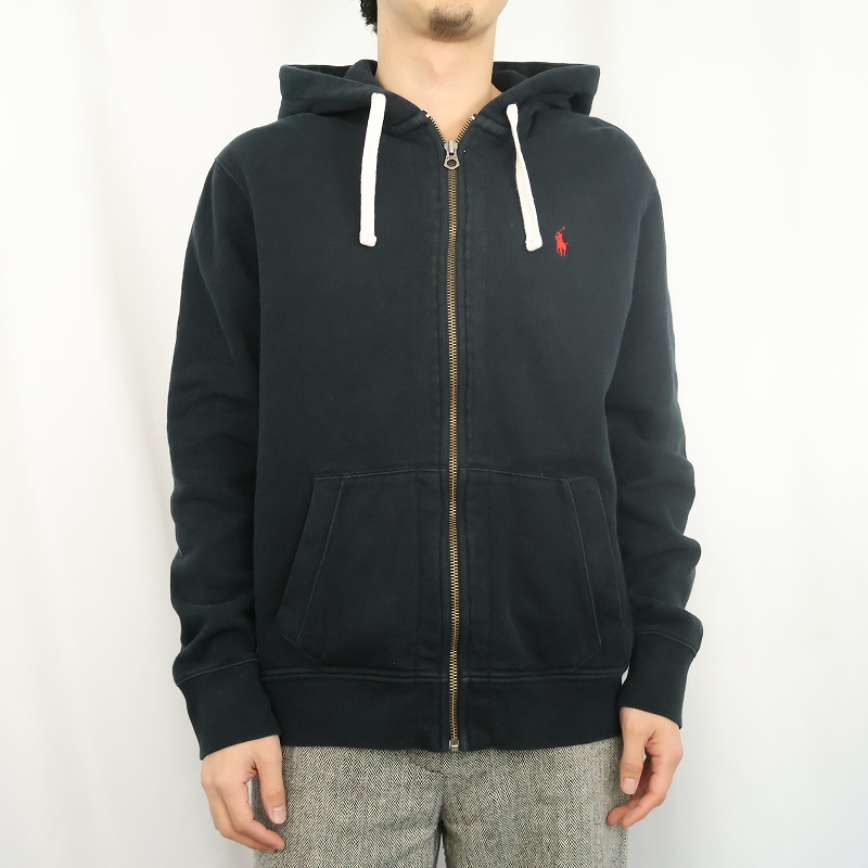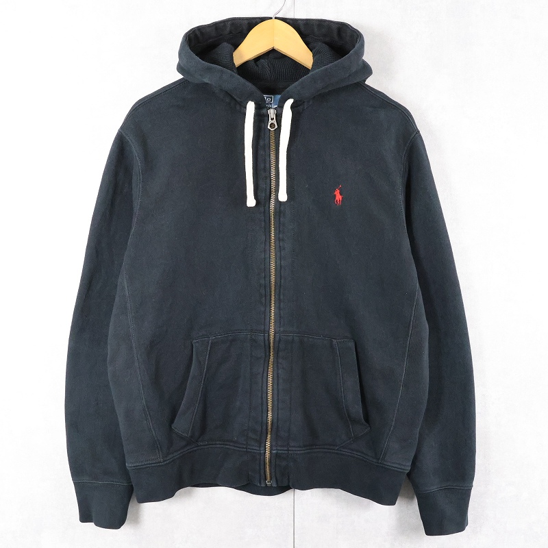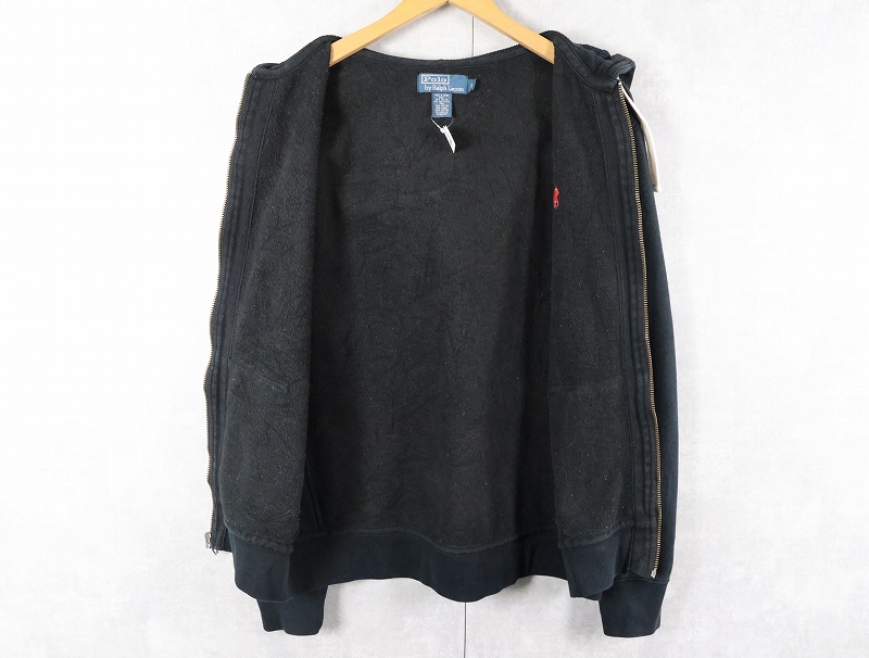 POLO Ralph Lauren REVERSE WEAVE TYPE ロゴ刺繍 裏サーマル スウェットジップパーカー BLACK L [163523]