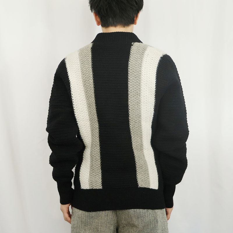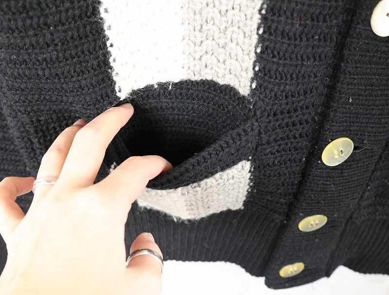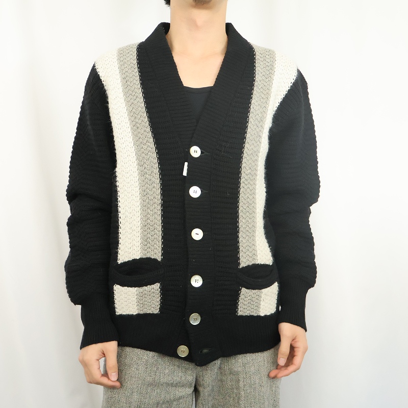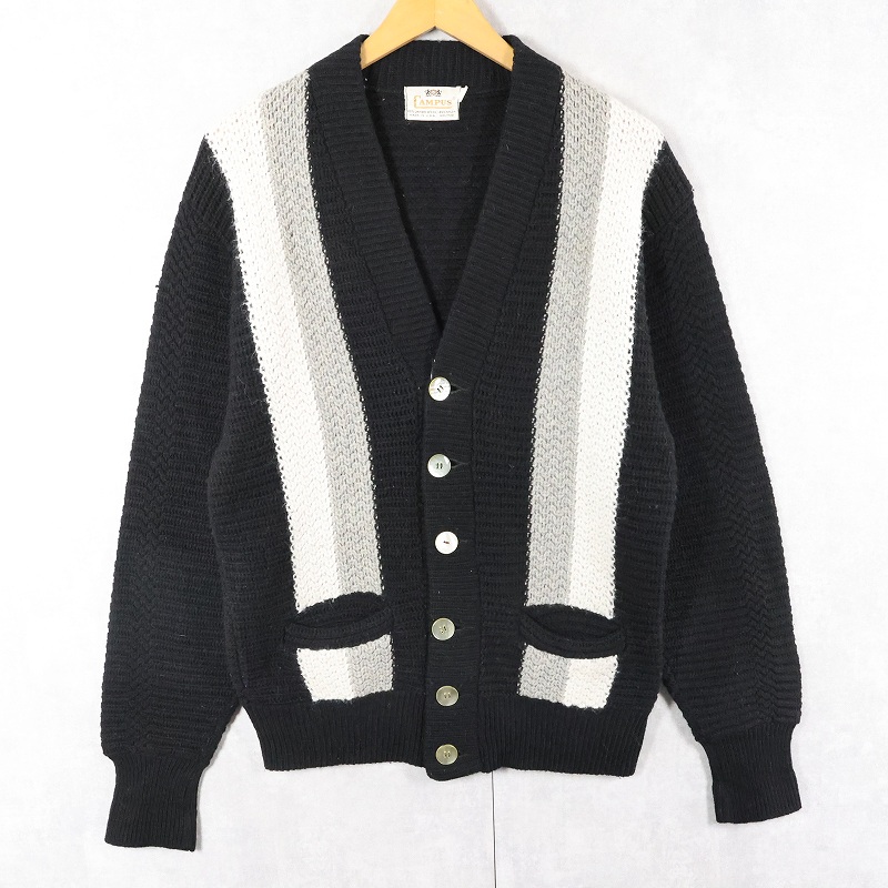 60's CAMPUS USA製 切り替えデザイン ラムウール×ナイロン ニットカーディガン S [163525]