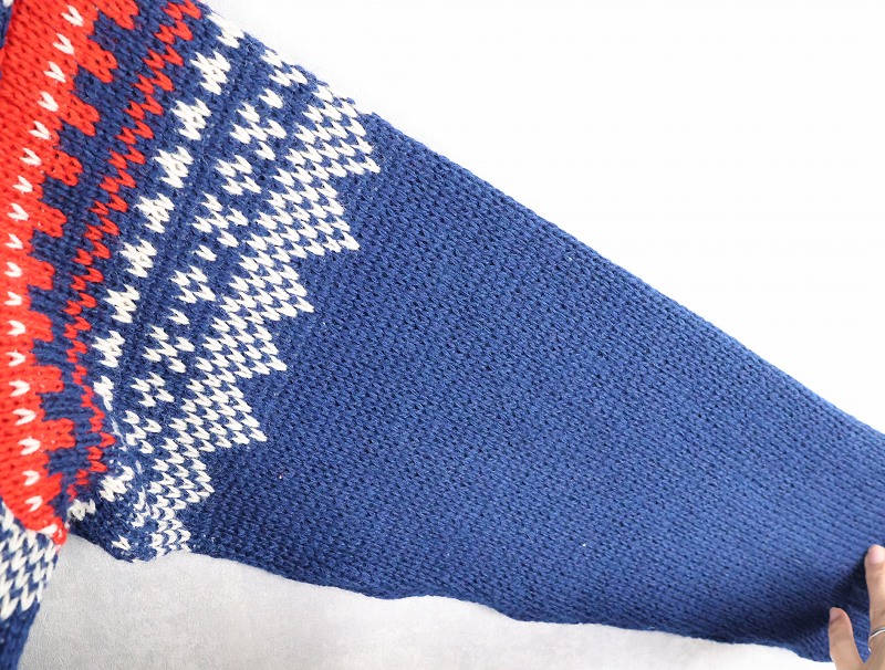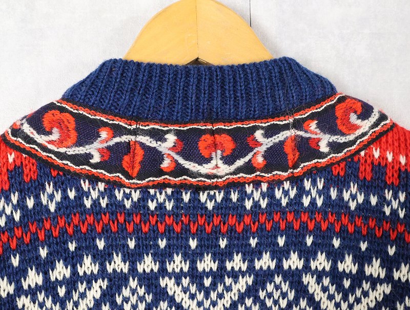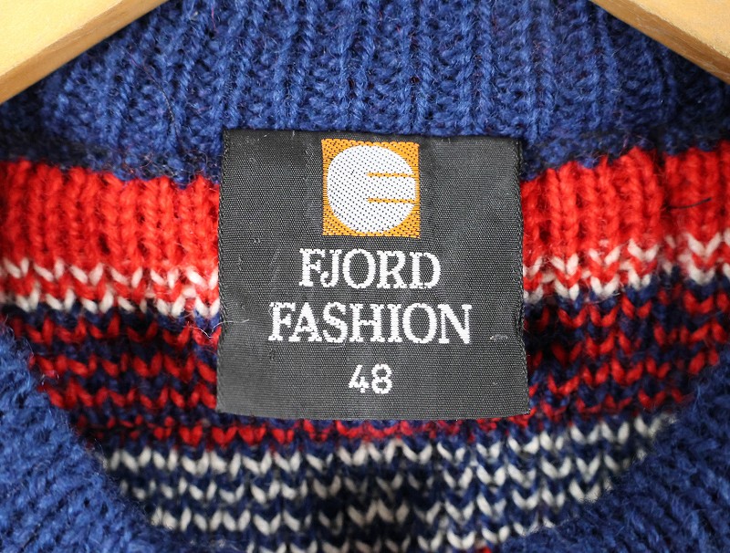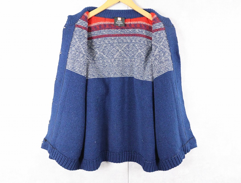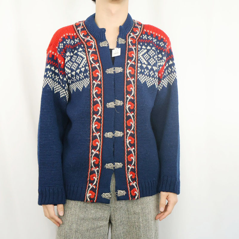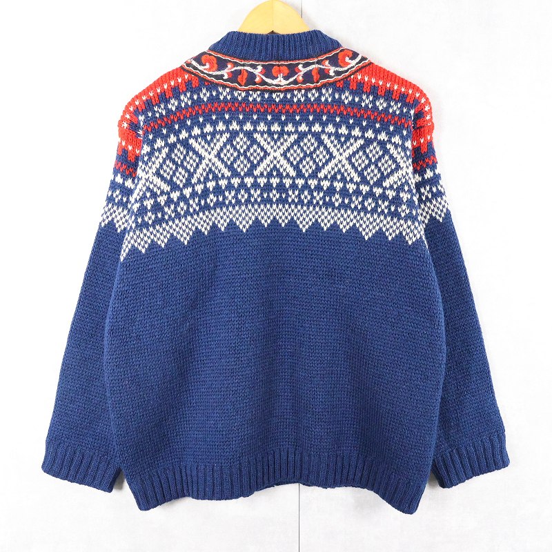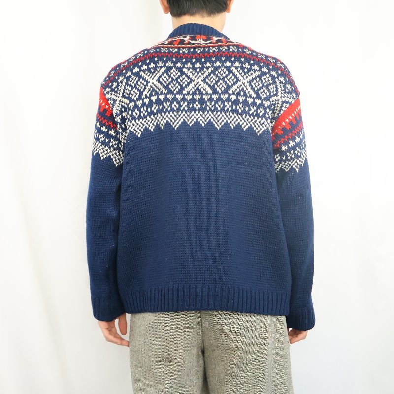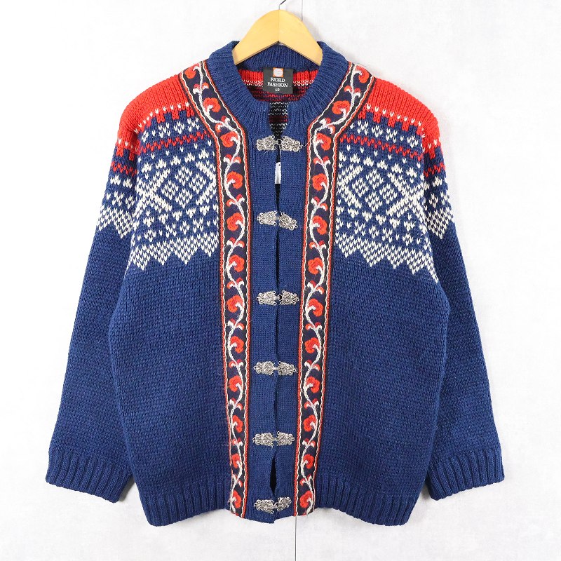 80's〜 FJORD FASHION ノルディック柄 ウールニットカーディガン SIZE48 [163527]