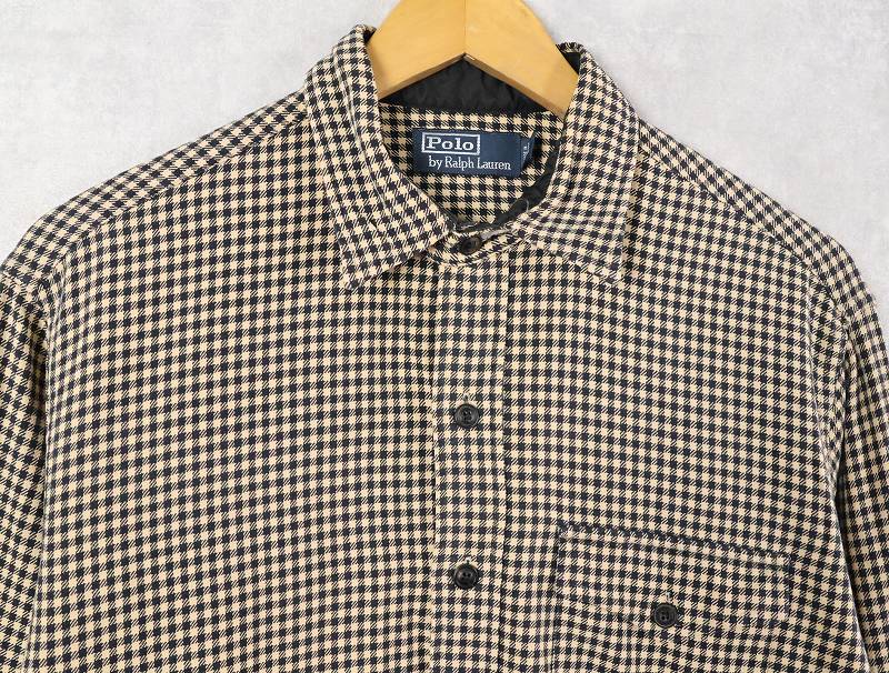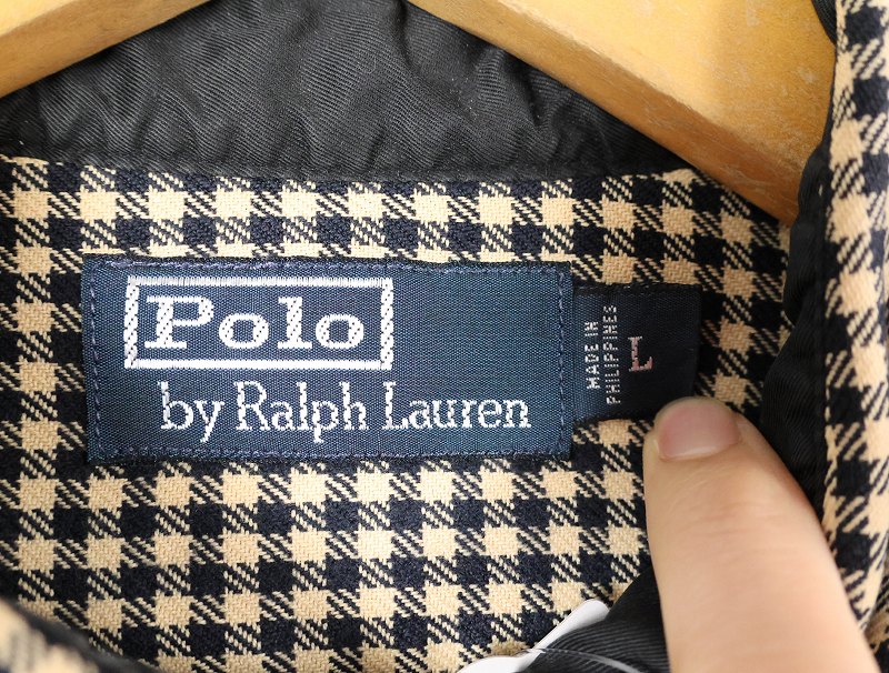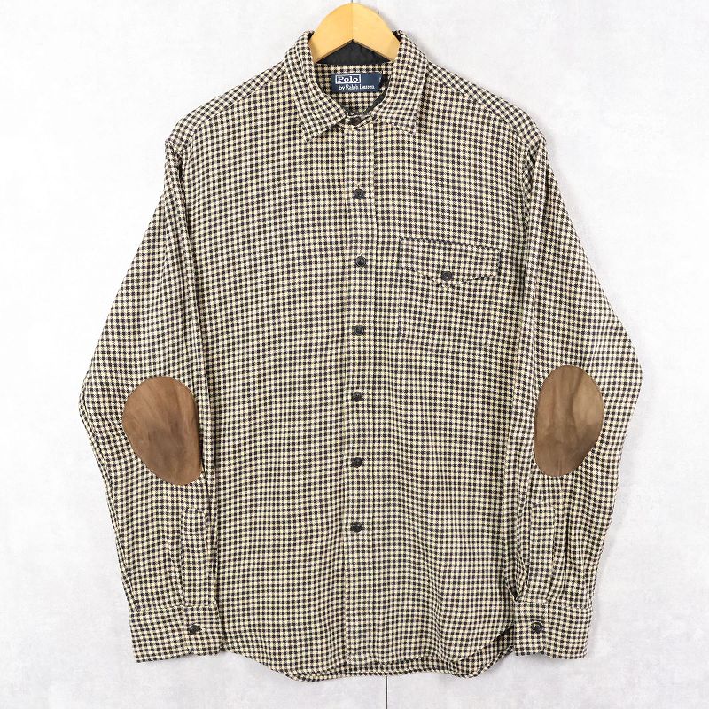 POLO Ralph Lauren エルボーパッチ付き ギンガムチェック柄ライトネルシャツ L [163547]
