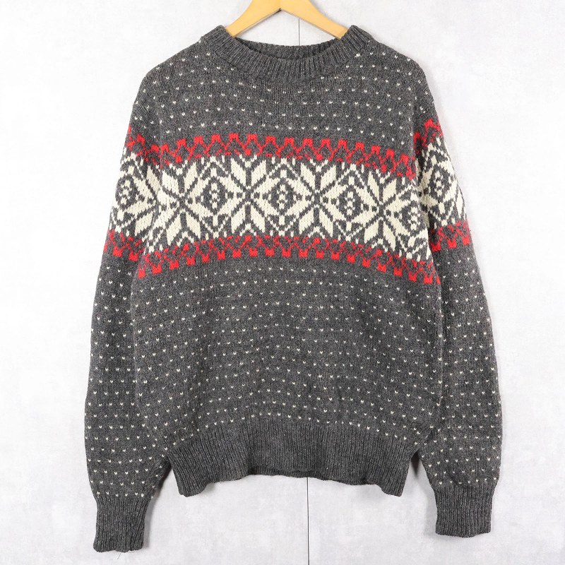 90's LANDS' END USA製 ノルディック柄 ウールニットセーター L [163551]