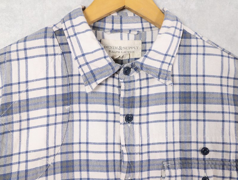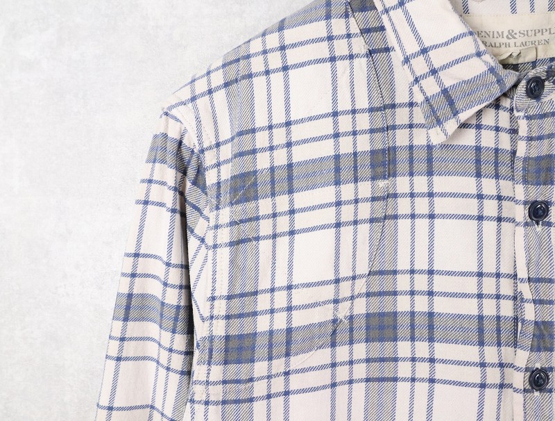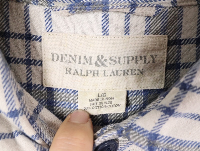 Ralph Lauren DENIM&SUPPLY チェック柄 ガンパッチ付き ライトネルシャツ L [163554]