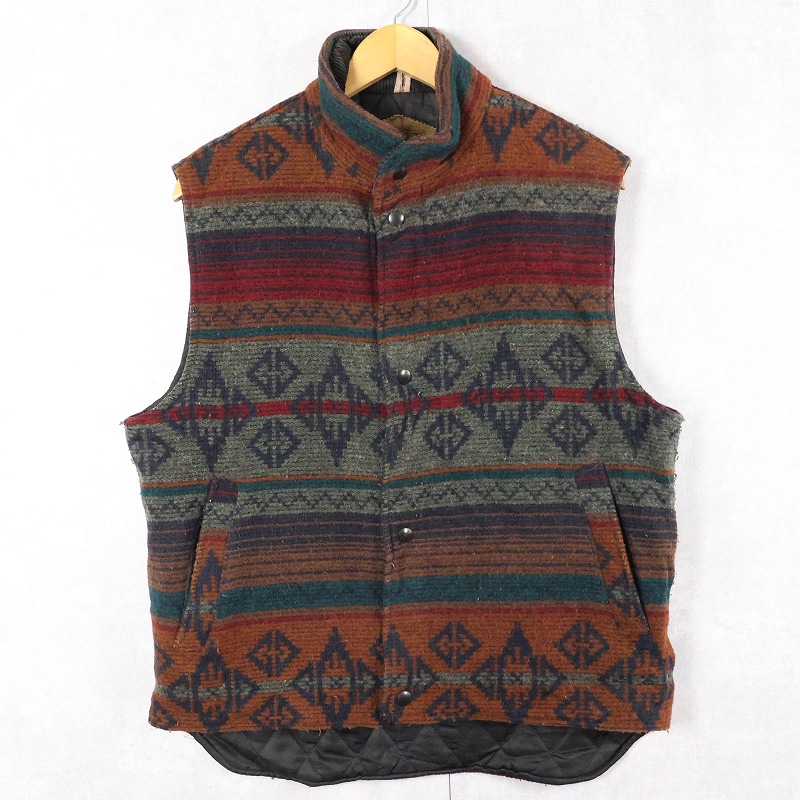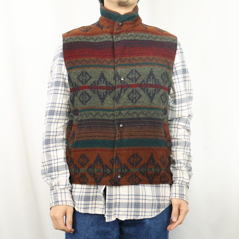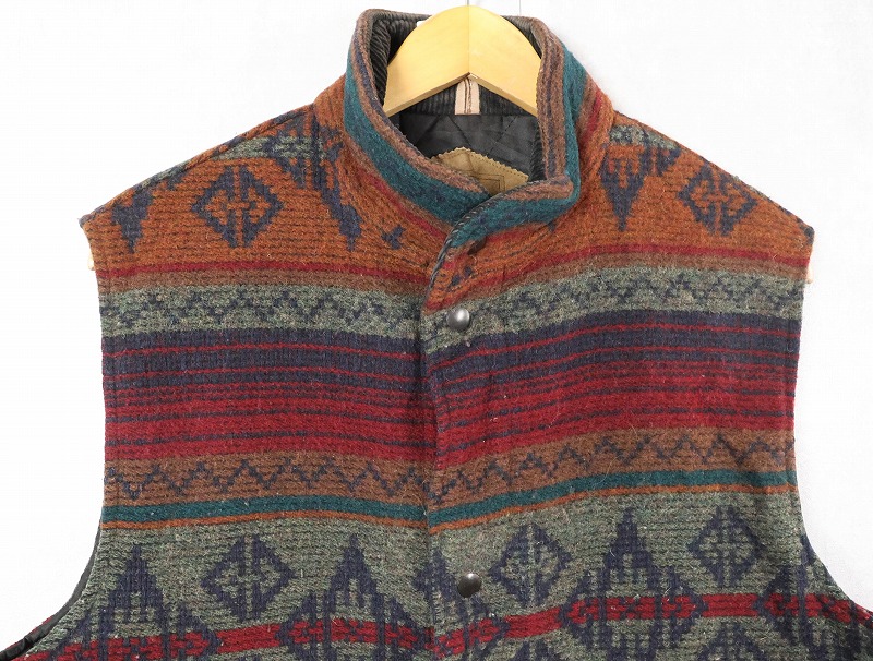 80's Woolrich USA製 “NORDIC NAVAJO” 裏キルティング ウールベスト M [163555]