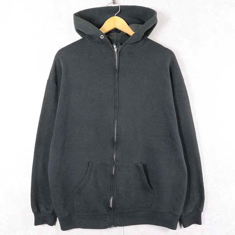 90's JERZEES USA製 無地スウェットジップパーカー BLACK XL [163573]