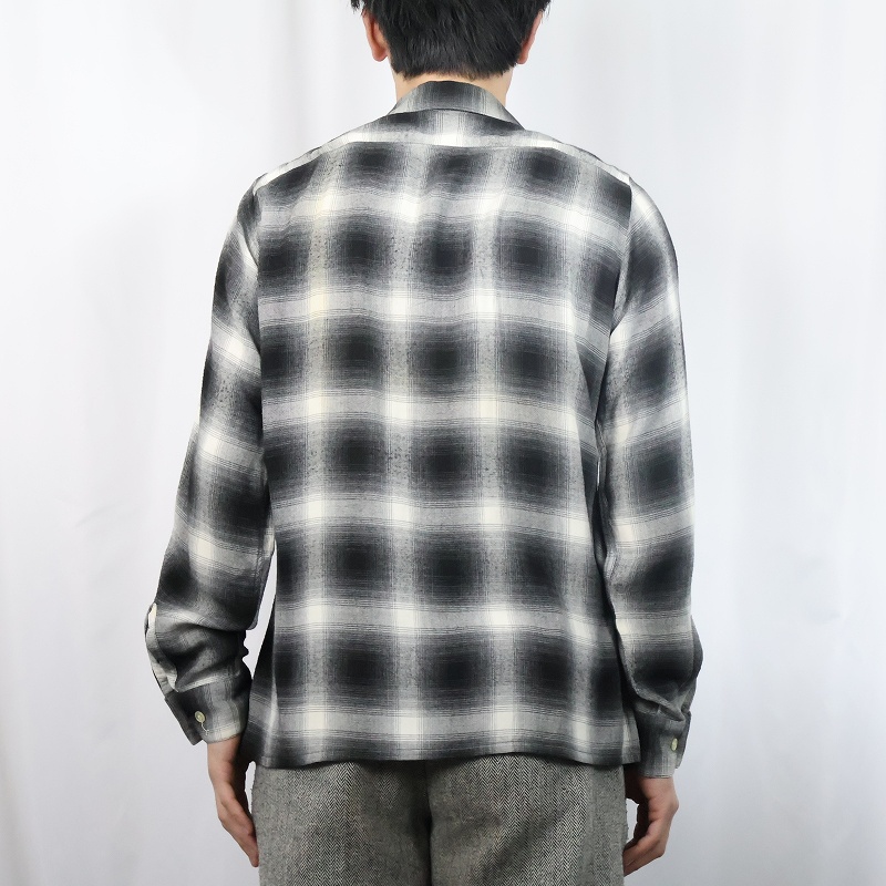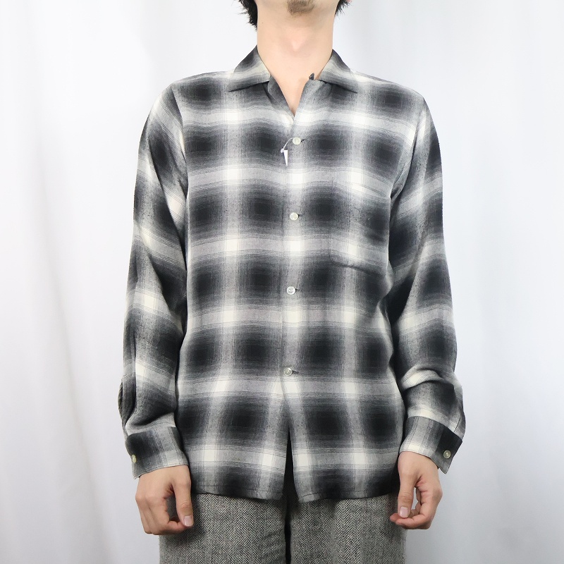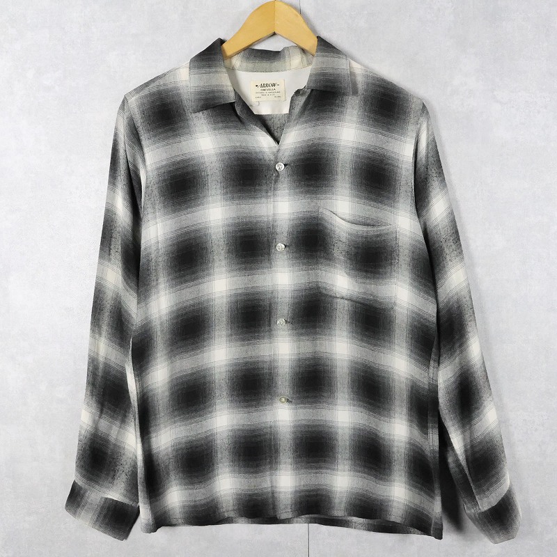 60's ARROW オンブレーチェック柄 レーヨンオープンカラーシャツ S 14-14 1/2 [163582]