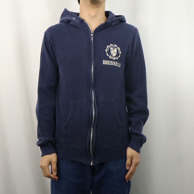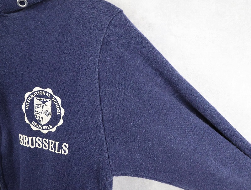 80's Champion USA製 トリコタグ "BRUSSELS" プリントスウェットフーディー L [163585]