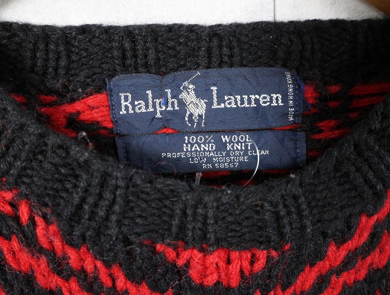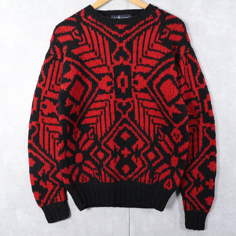 90's〜 Ralph Lauren "HAND KNIT" ネイティブ柄 ウール ハンドニットセーター [163629]