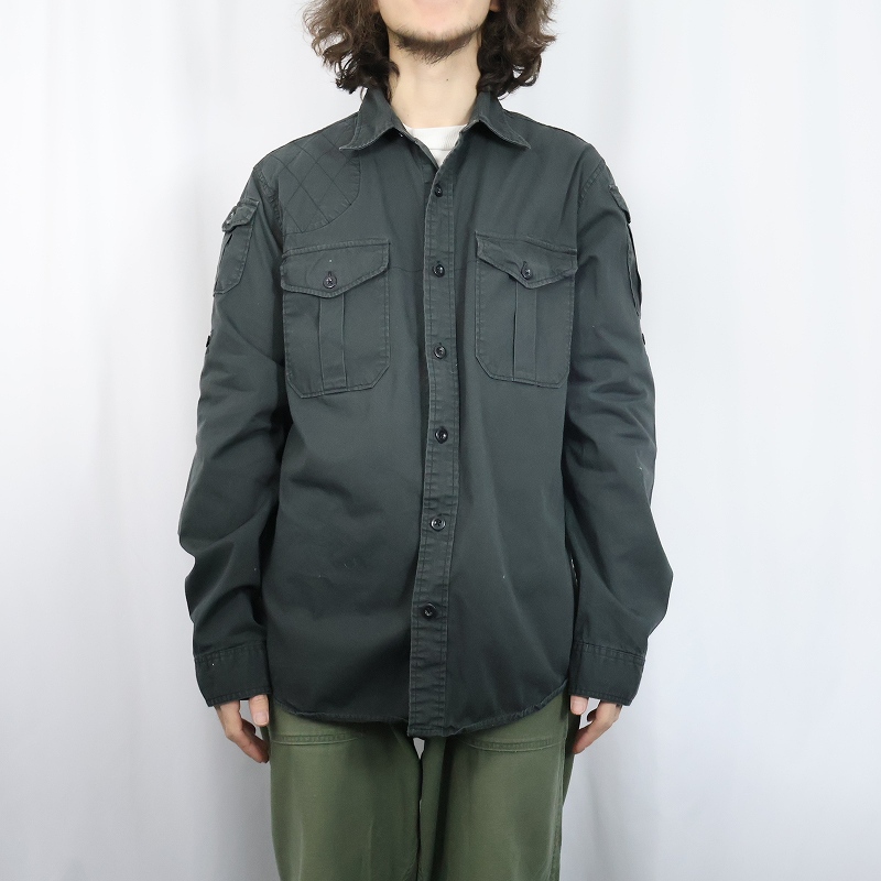Ralph Lauren DENIM&SUPPLY ガンパッチ付き ハンティングシャツ GREYISH GREEN XL [163630]