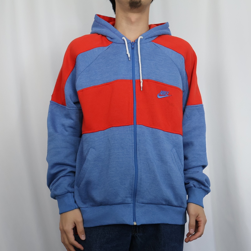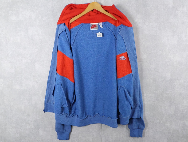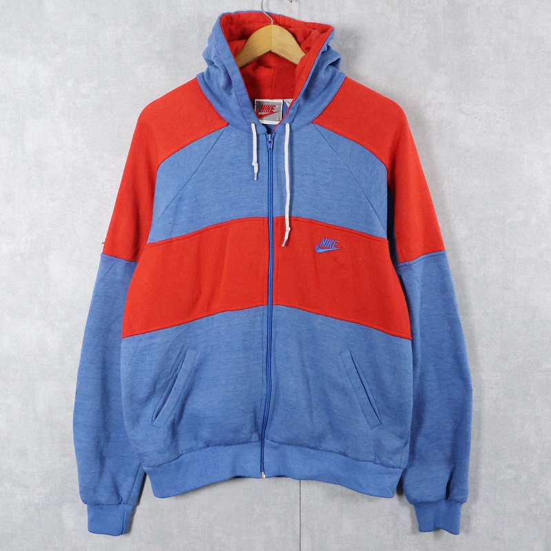 90's NIKE 銀タグ ロゴ刺繍 スウェットジップパーカー L [163682]