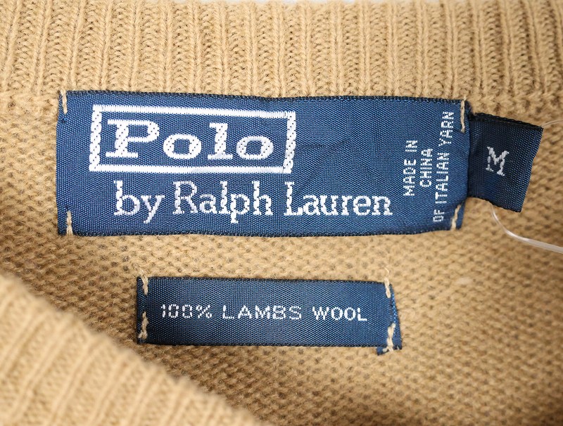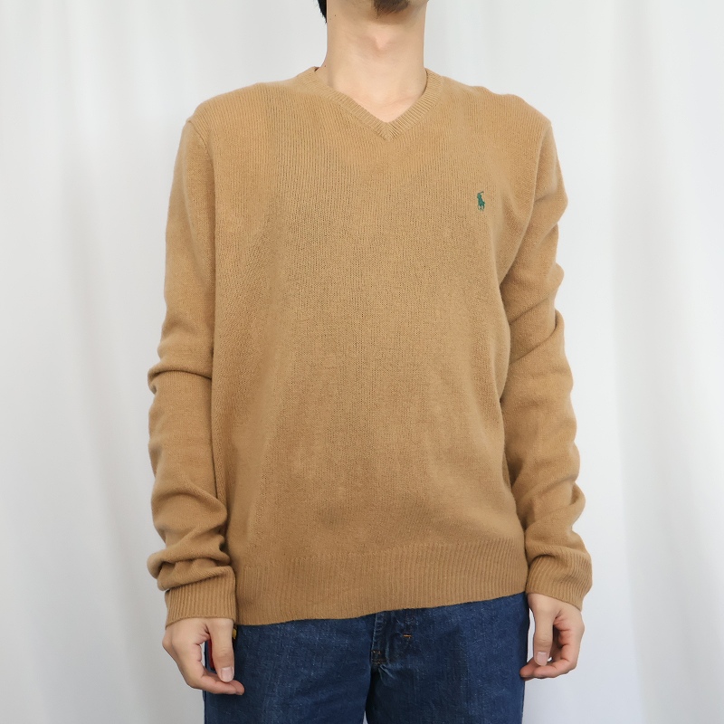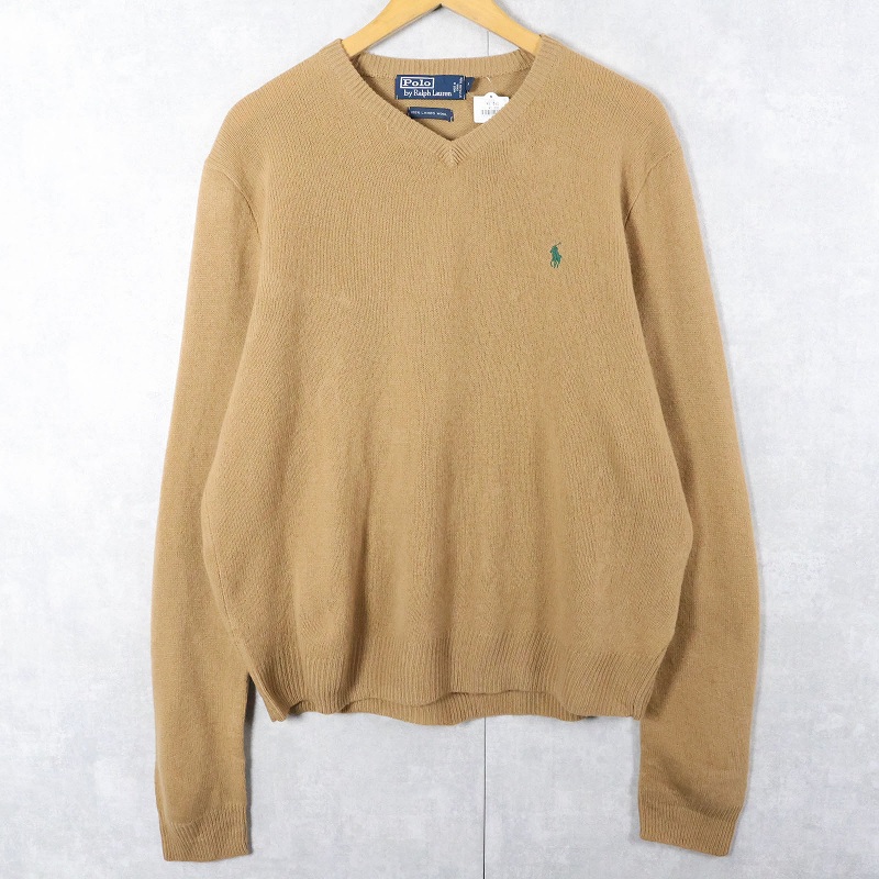 POLO Ralph Lauren ロゴ刺繍 Vネック ウールニットセーター M [163698]
