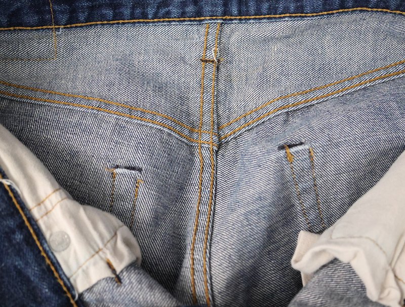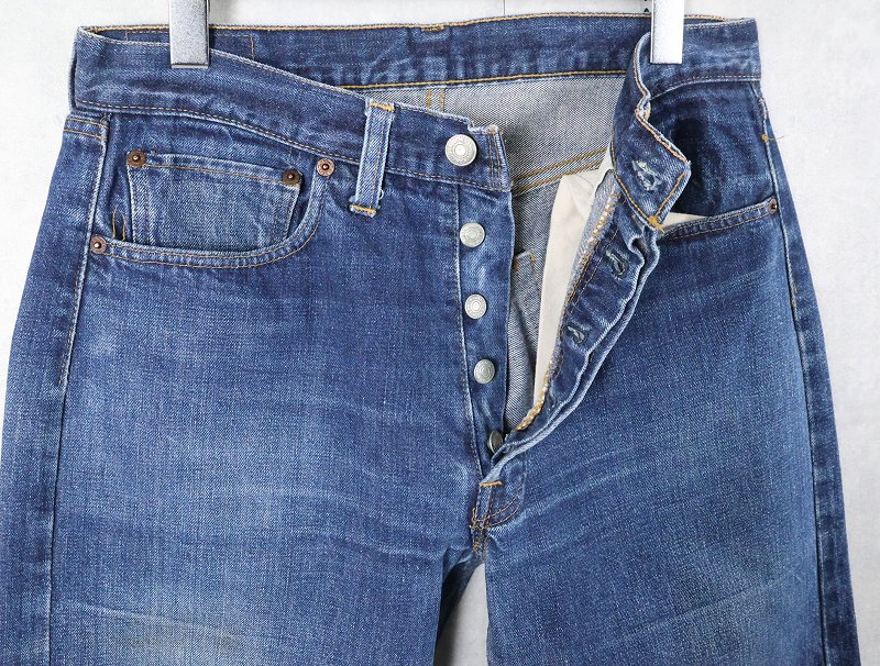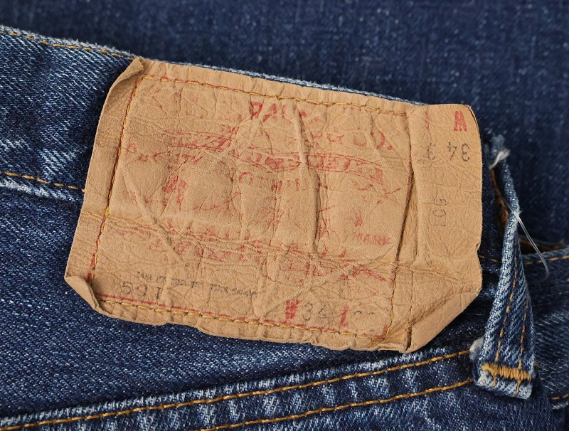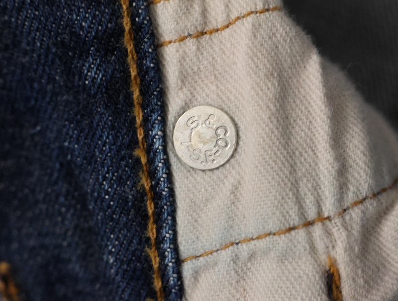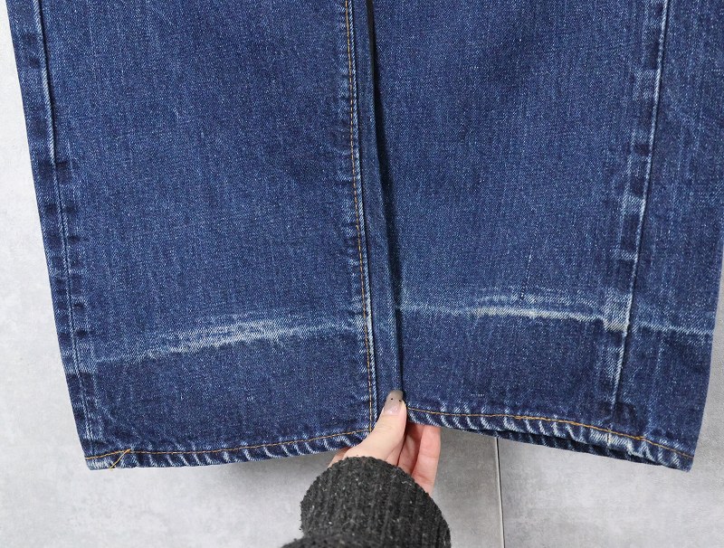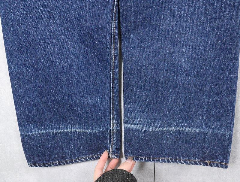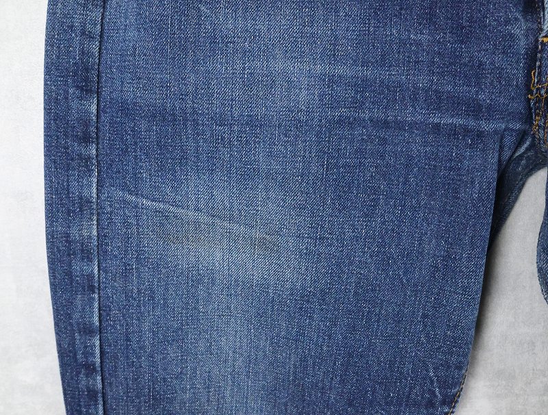 - 擦れ、薄汚れ、股部分にリペア跡、裾等にアタリがあり、ビンテージらしい良い雰囲気が出ており、大変かっこいい一点です。