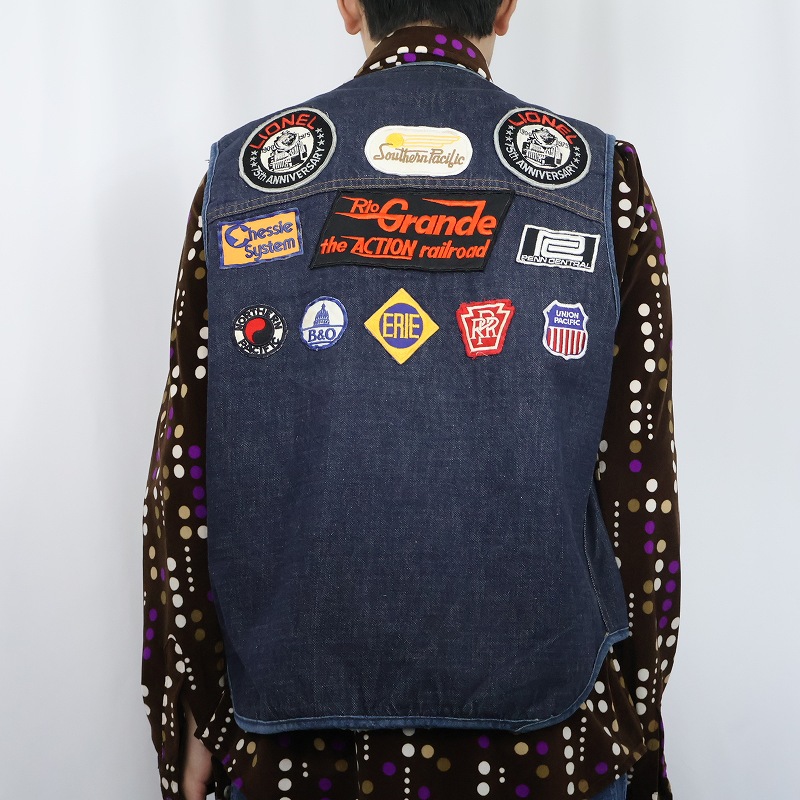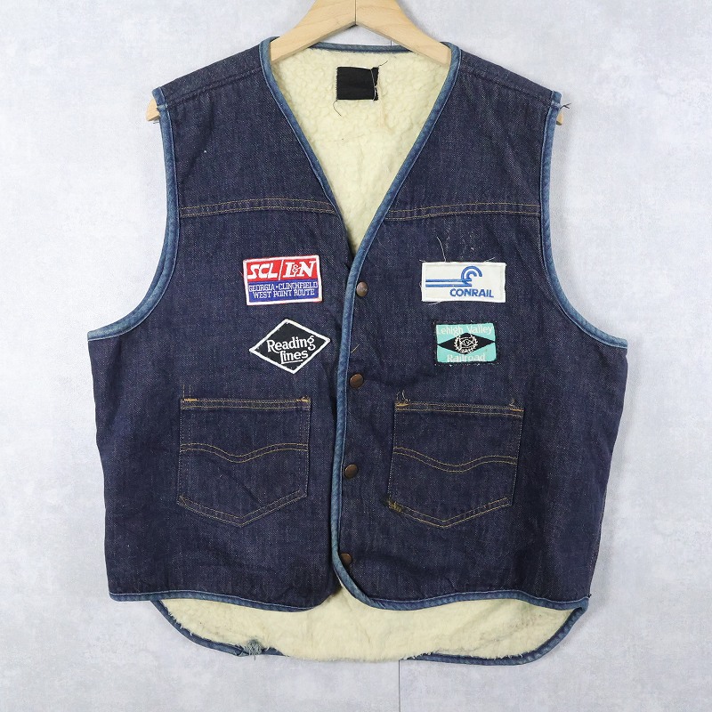 70's Sears ROSEBUCKS ワッペン付き バットダイ ボアライナーデニムベスト [163718]