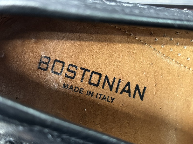 BOSTONIAN ITALY製 レザードライビングシューズ シューツリー付き BLACK 26.5cm [163725]