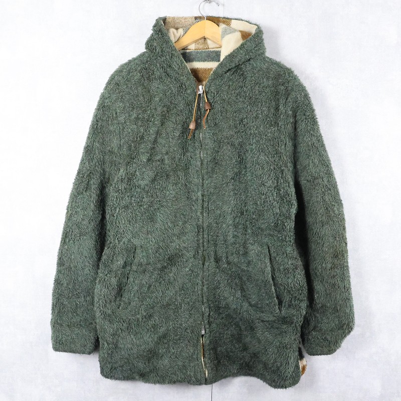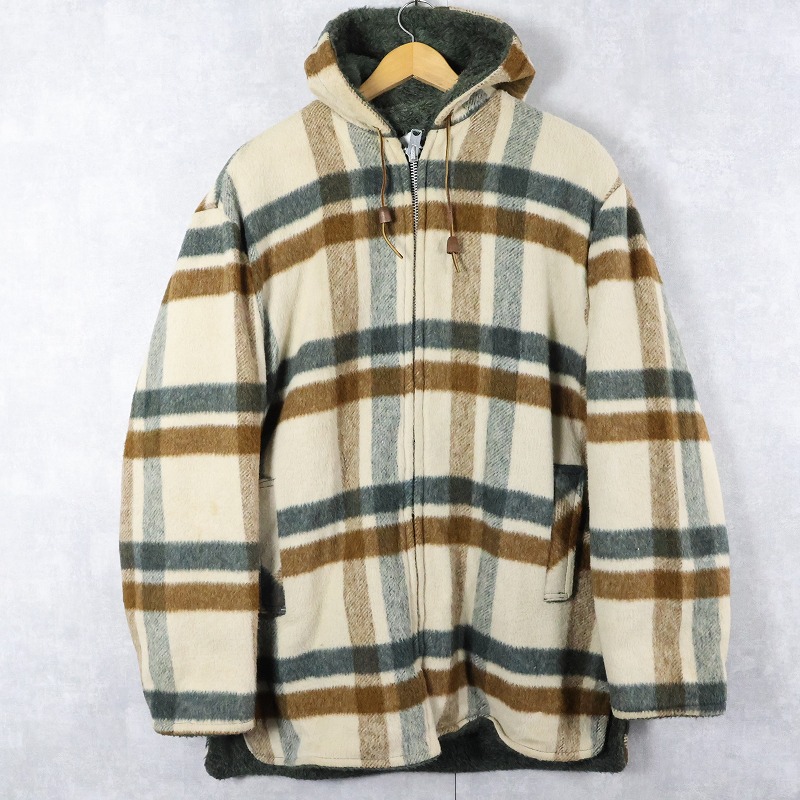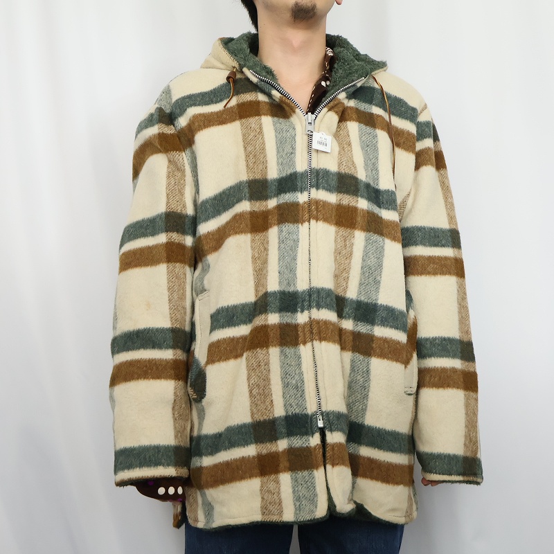 70〜80's チェック柄×ボア ウールジップパーカー [163732]
