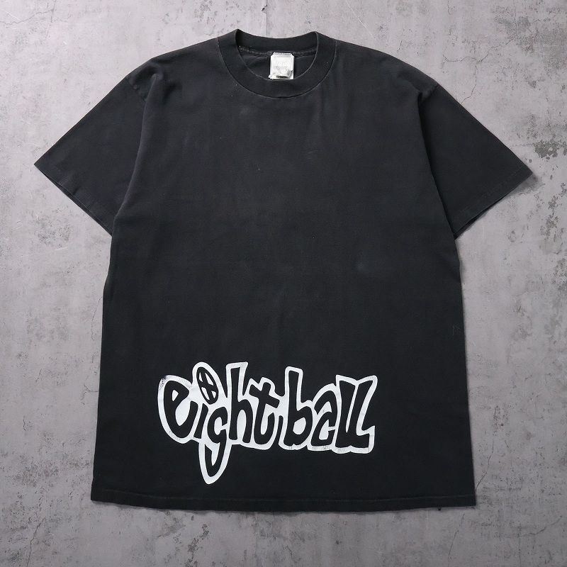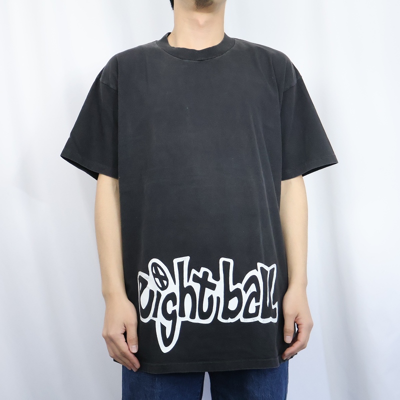 90's eight ball USA製 ロゴプリントTシャツ BLACK XL [163748]