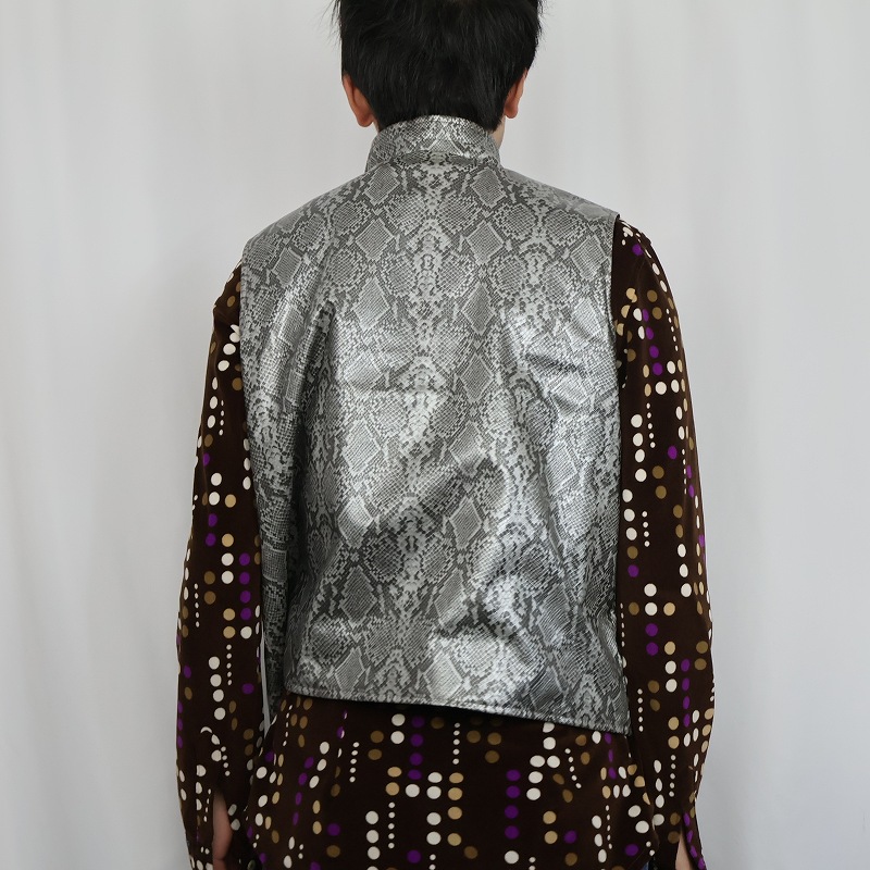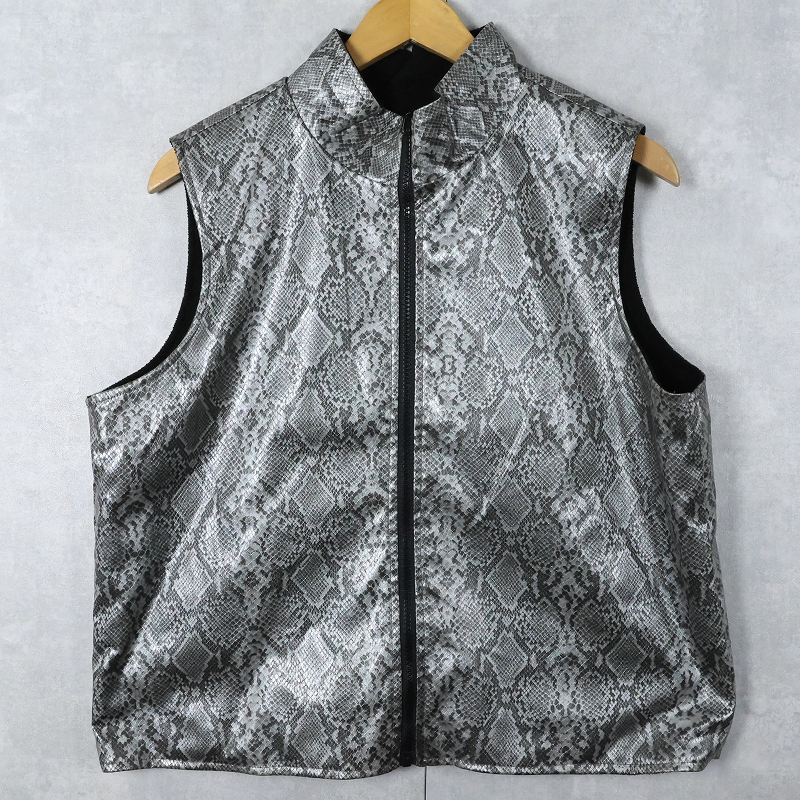 パイソン柄 フェイクレザー×フリース リバーシブルベスト L [163753]