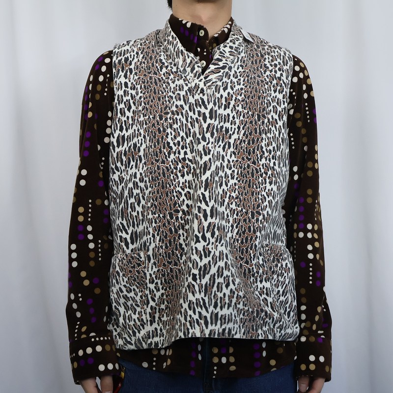 ハンドメイド レオパード柄 コーデュロイベスト [163756]