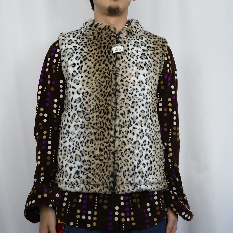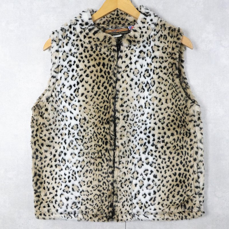 90's Cobblestone Canyon USA製 レオパード柄 フェイクファーベスト [163758]