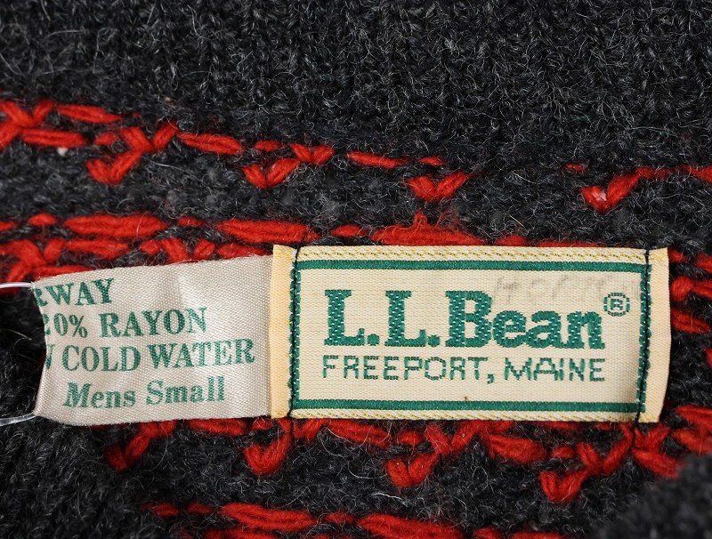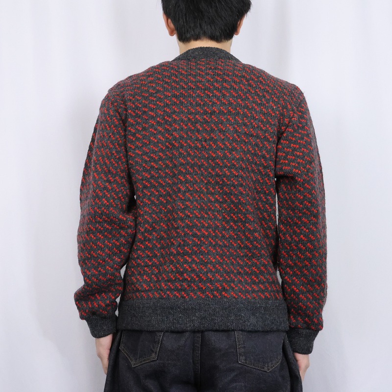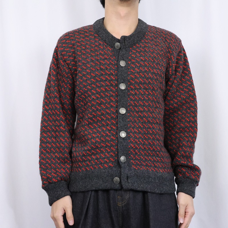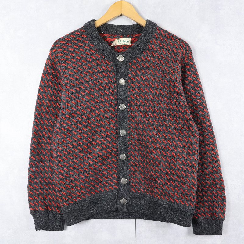 80's L.L.Bean バーズアイ柄 ウールニットカーディガン S [163779]